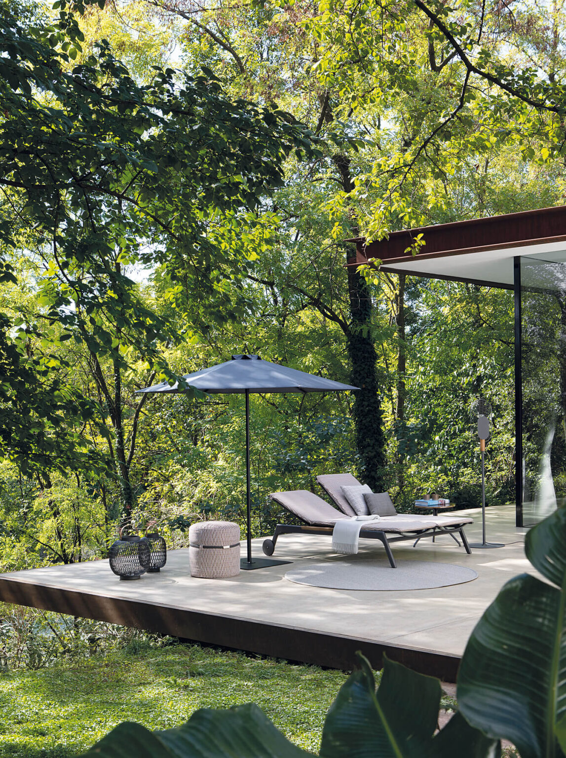 320 grams of olefin fabric in white, ecrù or charcoal color. Complete with anti wind bellows, opening a pulley and resin crowns.