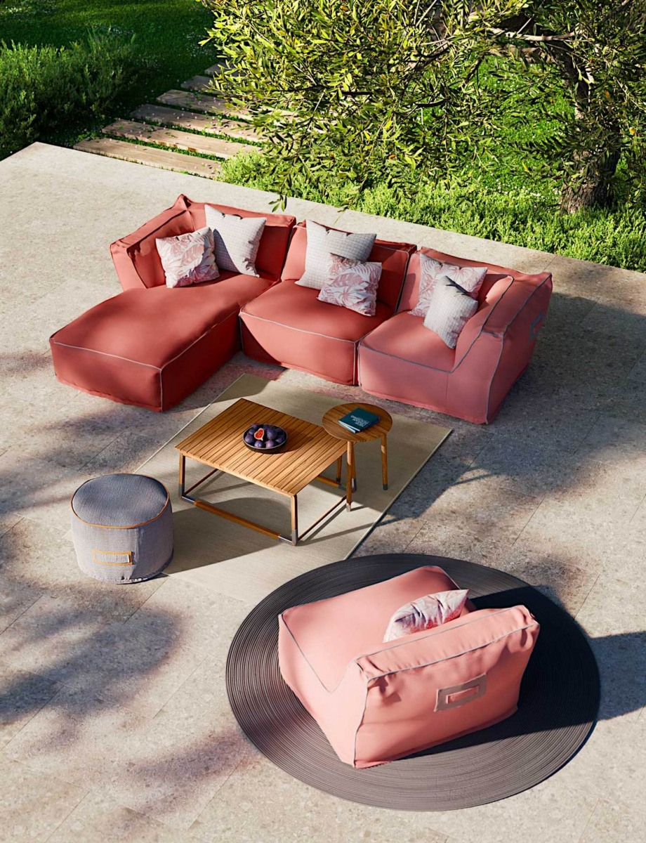 Frames in polystyrene microspheres breathable, coated fabric breathable. Lining fabric of choice from Atmosphera samples, removable, washable. Base in anti-slip rubberised technical fabric.