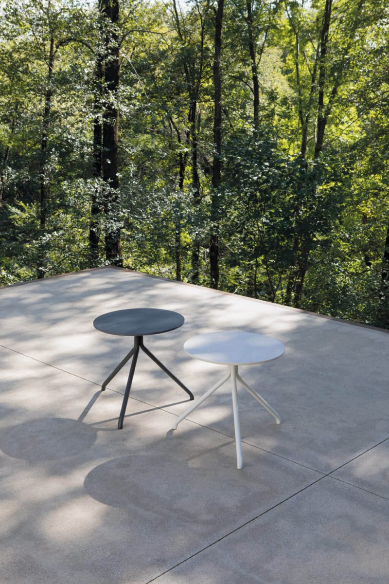 The contrast between the white or graphite aluminium structure and the ceramic, stoneware or HPL top gives Trio a recognisable and decisive yet intensely multifaceted character.