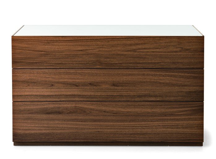 CITY is a 3-drawer bedroom chest and nightstand, with a clean and elegant design. Its aesthetics is characterised by a tempered glass top available in a range of matching finishes.