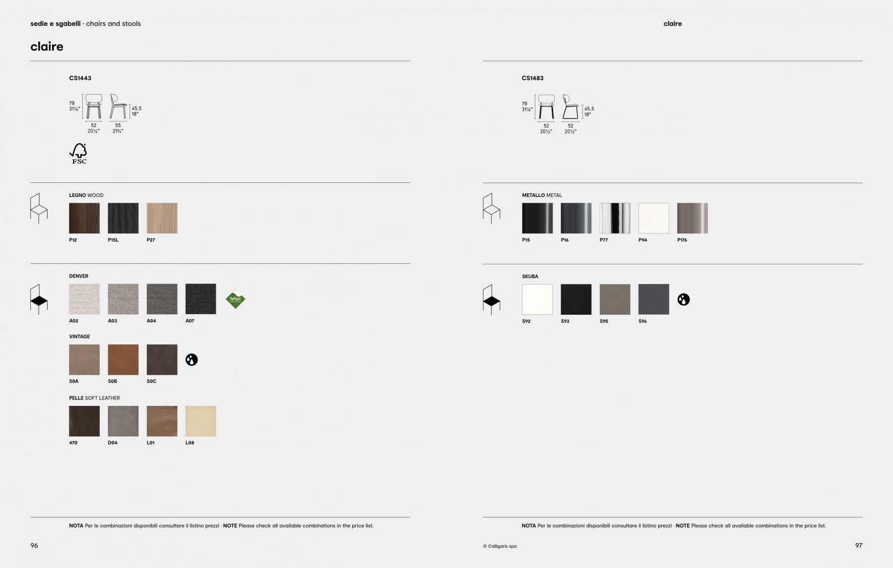CLAIRE chair is also available with metal frame and upholstered seat/backrest.