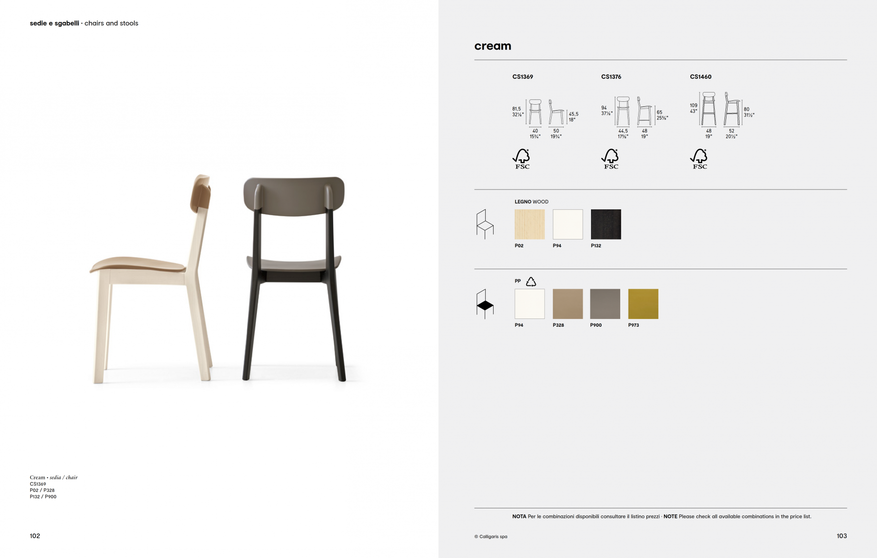 Model CREAM chair, with frame in solid beech wood and seat/backrest in 100% recyclable polypropylene. Thanks to a cleverly designed interlocking mechanism – with concealed screws – and the use of traditional and modern materials – wood and plastic – that combine harmoniously, the chair is lightweight and easy to move. The slightly curved backrest and contoured seat provide the right comfort.