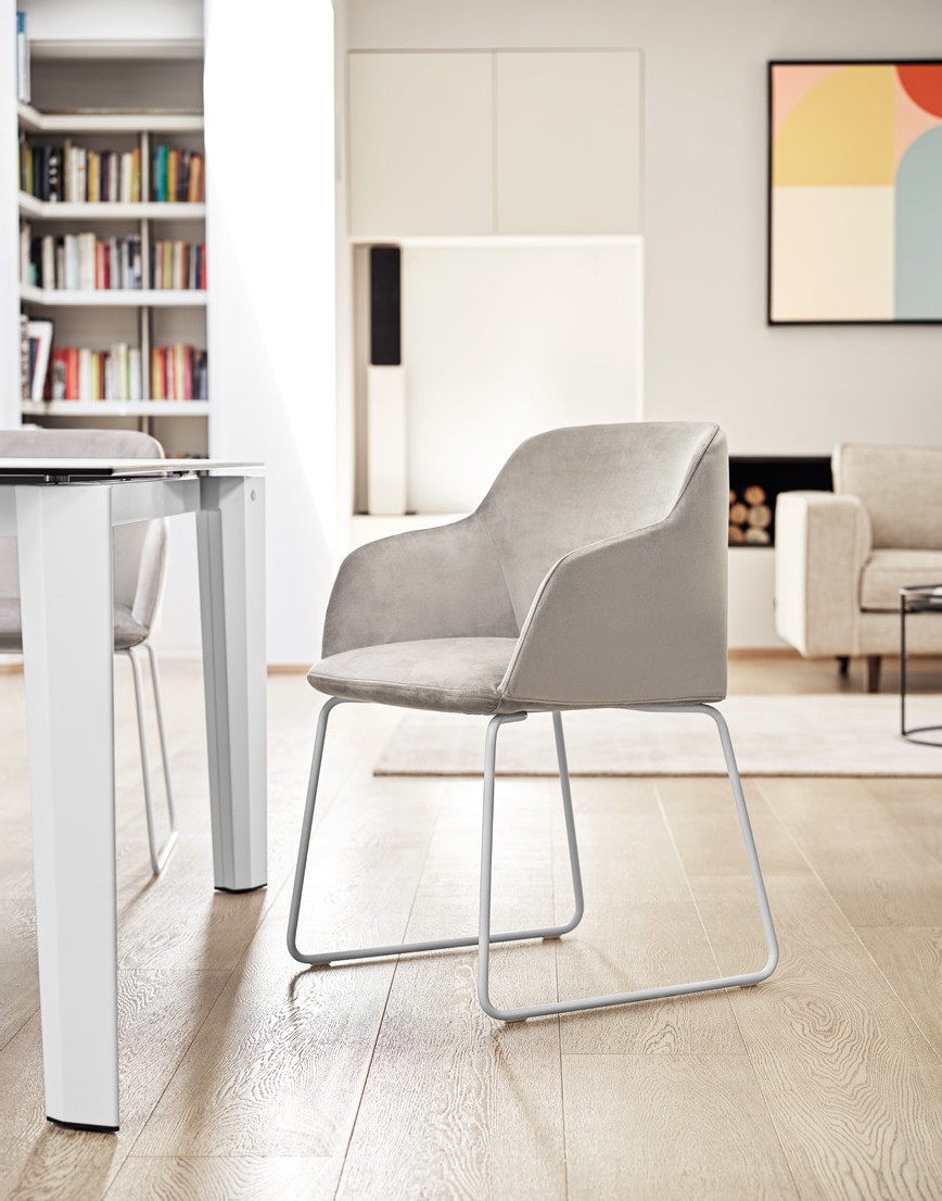 ELLE comes with a metal sled base and features a slender, elegant design that adapts to any location.