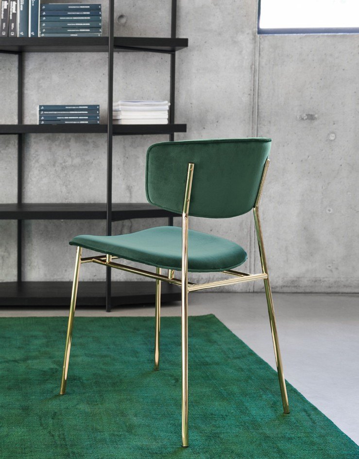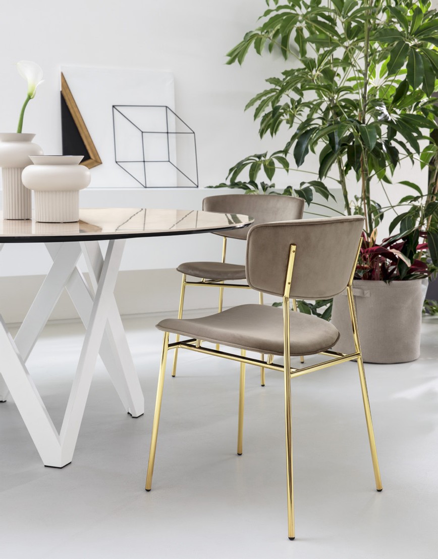 Inspired by the chairs of the 1950s, FIFTIES reinterprets the decade’s style canons creating an object that evokes happy memories. Consistent with the trends of those years, FIFTIES is characterised by a nimble silhouette that combines a metal frame with classic, elegant velvet, leather or leatherette boasting a soft and silky feel. The four metal tube legs adds lightness and elegance to the chair, supporting the graceful seat and wraparound backrest, which are both padded for maximum comfort. Add a vintage touch to your dining area. Choose the FIFTIES that’s perfect for you.