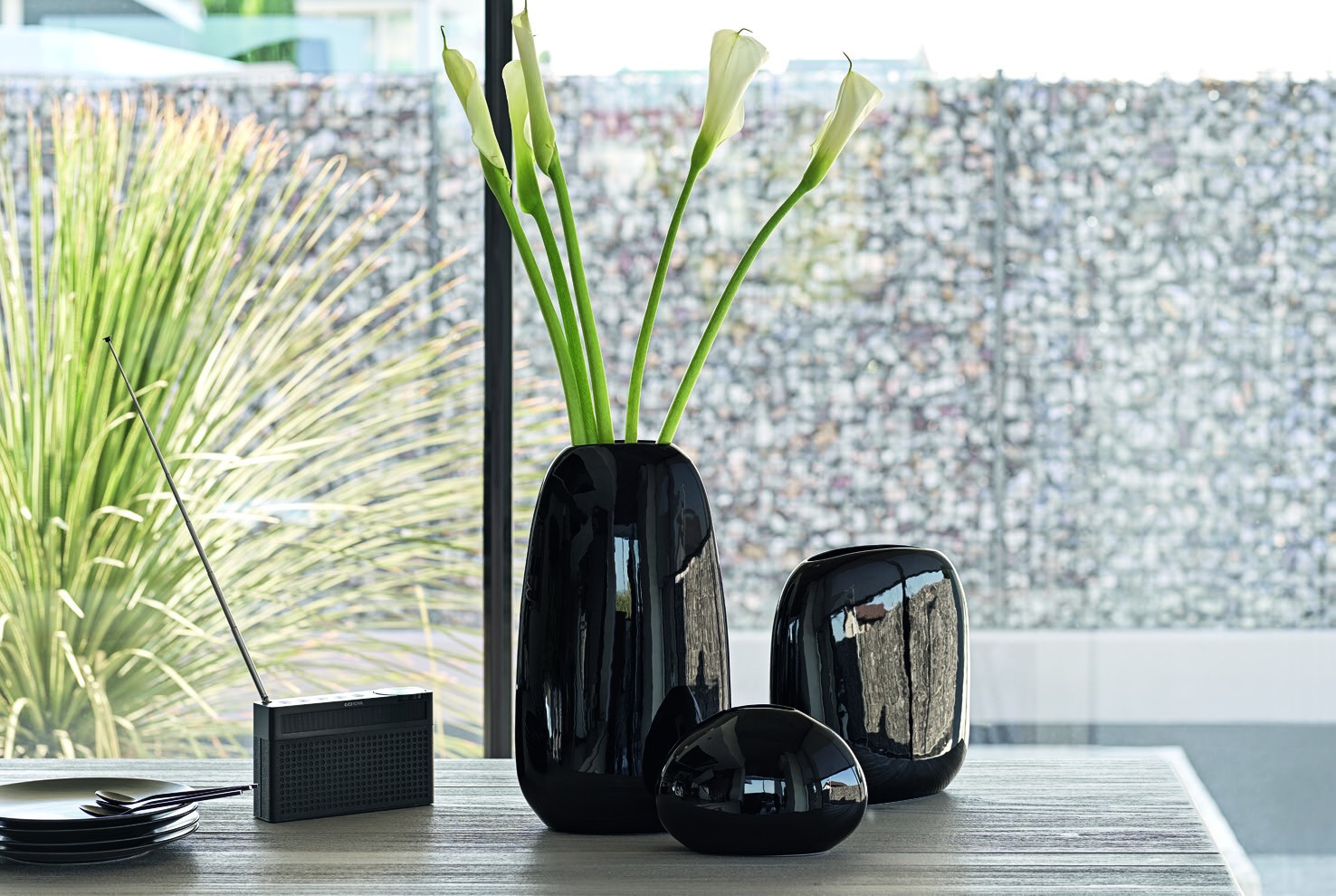 FLAVOUR is a collection of 3 ceramic vases characterised by rounded shapes and natural colours highlighted by the glossy finish. As if they were embellished stones or lucky talismans, combined with each other or as a single decorative object, the ceramic vases from the FLAVOUR collection complete environments with the simplicity of their elegance.