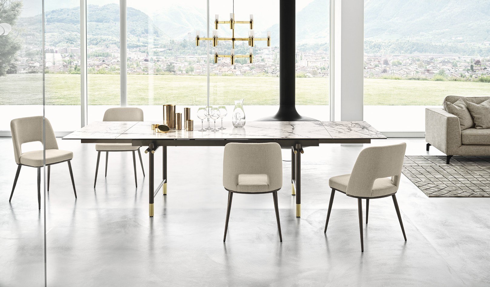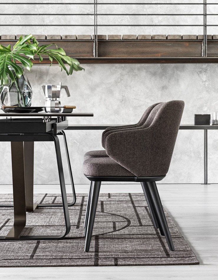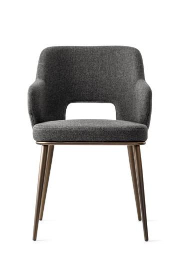 This new padded FOYER chair exudes a sensation of comfort and invites you to sink in and relax. With a cocooning padded seat shell in curved plywood and soft seat structure with elastic belts, it is set on a refined wooden base resting on four conical legs and comes in shades that are a faultless match to the seat shell finish.