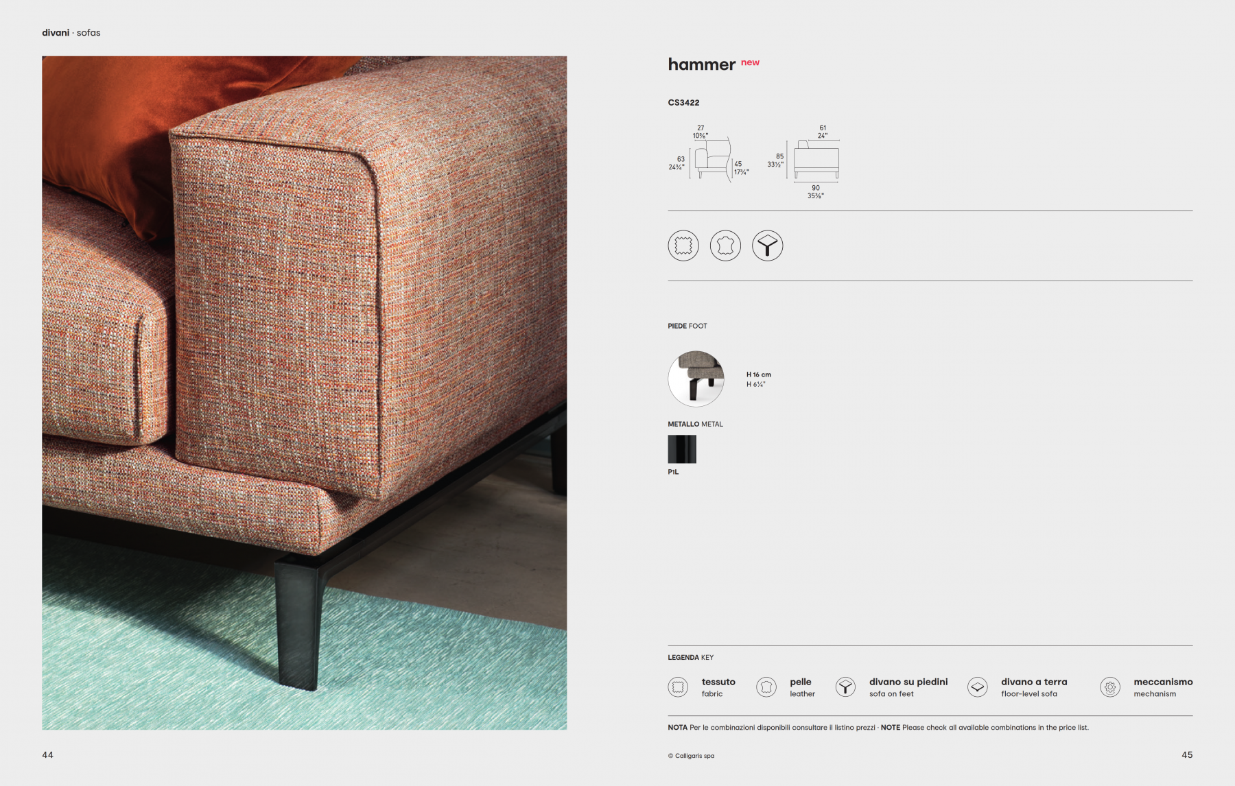 Harmonic and comfortable shapes are the elements that distinguish Hammer, a sofa with great liveability for a timeless elegance. The embracing paddings have a linear look and integrate with the structure and the slightly rounded corners offering an unexpected comfort and softness. A praise to idleness with contemporary lines and extremely refined details.