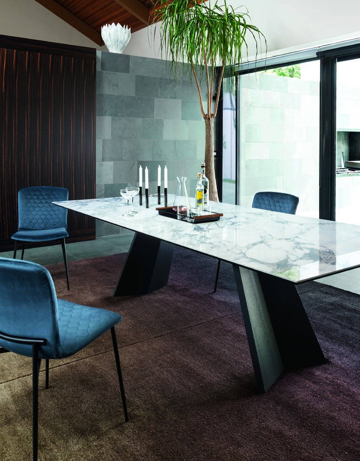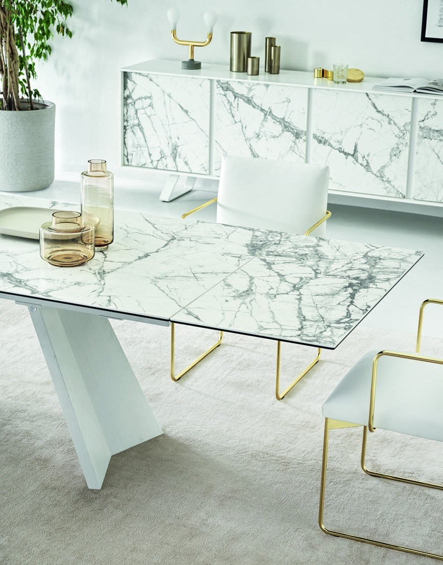 ICARO is an extendable table with a base structure in veneered wood and a top made from wood or ceramic. It is sturdy, dependable, versatile and extremely elegant with its rectangular top and two side extension leaves measuring 40 cm each to be opened separately. Let the wings of Icaro lift your dining room to new heights with their refined design.