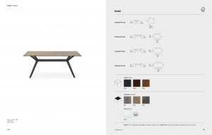 KENT is a non-extending table whose design evokes the furniture of the 60s and 70s. The different-sized tops are available in round and rectangular designs in transparent glass or glass-ceramic with different finishes. The wooden frame features shaped legs which support the different tops and a wooden beam as a connecting element.