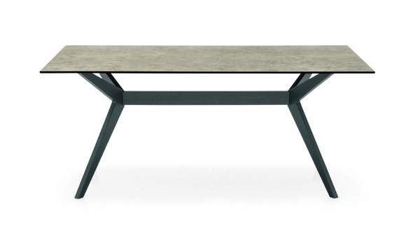 KENT is a non-extending table whose design evokes the furniture of the 60s and 70s. The different-sized tops are available in round and rectangular designs in transparent glass or glass-ceramic with different finishes. The wooden frame features shaped legs which support the different tops and a wooden beam as a connecting element.