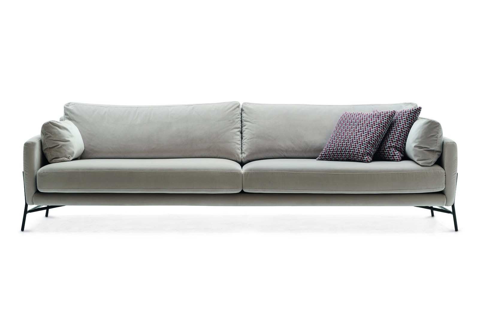 Contemporary, basic, with pleasant and elegant shapes, Le Marais sofa is very liveable and can be easily included in both traditional and contemporary rooms. The elegant and thin metal frame gives a touch of dynamism to the seat and backrest cushions, which special composition gives the padding a natural softness and elasticity. Le Marais is versatile, cozy and offers a great modularity freedom.