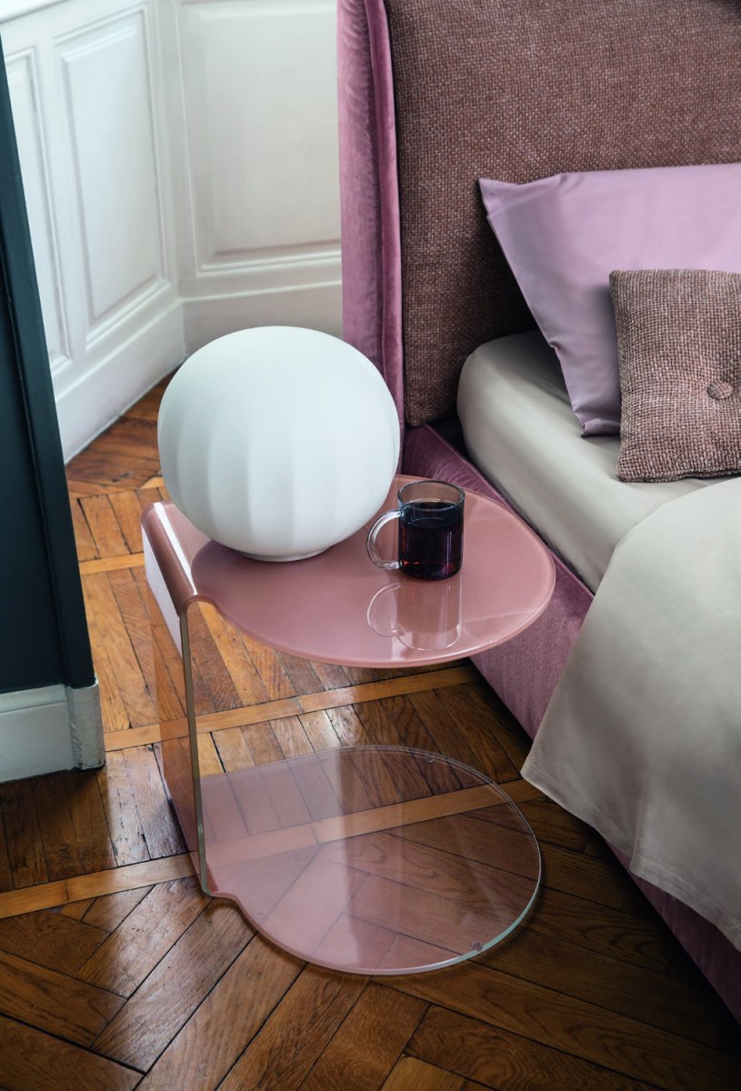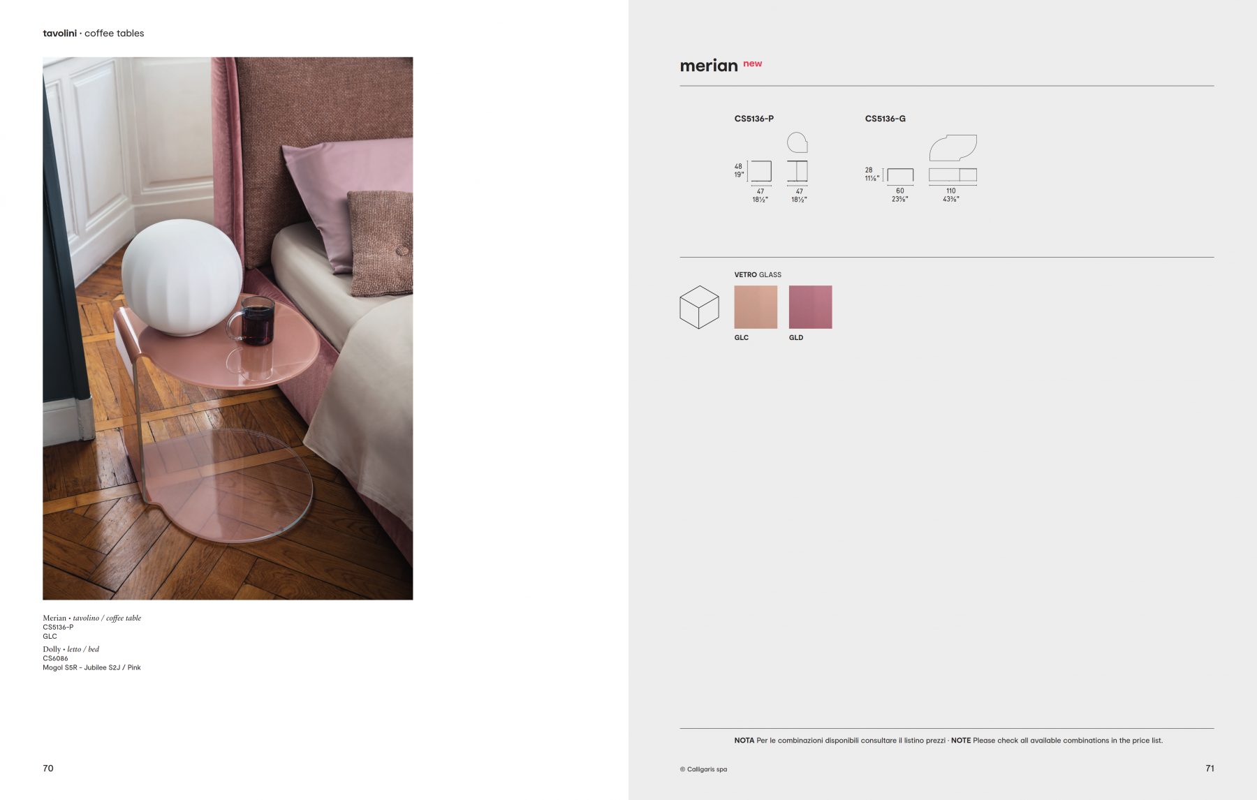 MERIAN is an innovative coffee table made from nuanced silkscreen-printed glass with finishing touches on the glass in a colourway which makes it elegant and extremely versatile. The palette includes both nuanced shades and full colour and will beautify any setting with a mixture of verve and delicacy.