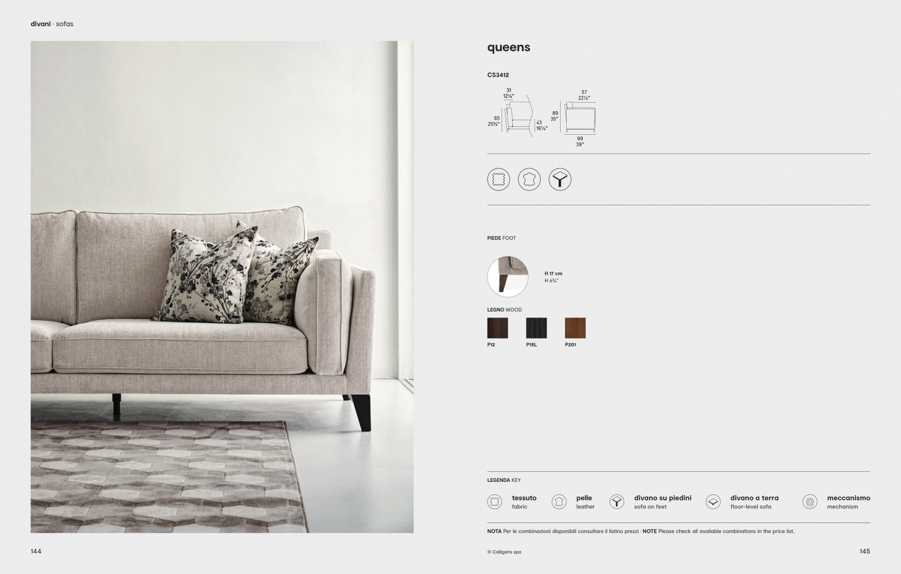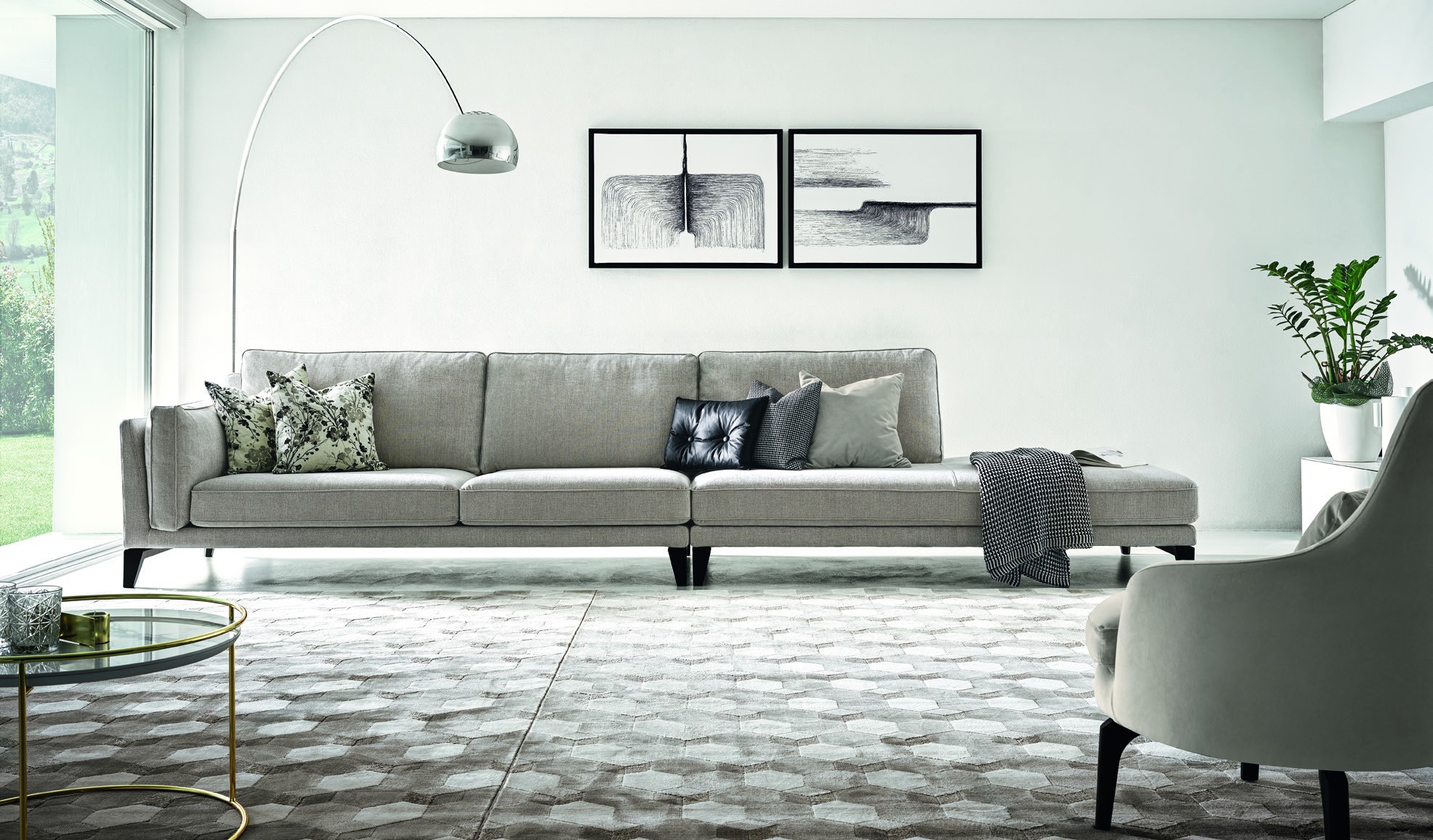 The Queens sofa has rigorous, but sought after lines in the proportions and sartorial details, which are pleasantly softened by the double armrest and the very soft and comfortable cushions. It is visually light thanks to the thin multifaceted ash wood feet. It was designed to offer a product that is comfortable, cozy and suitable for different uses and with the composition utmost freedom.
