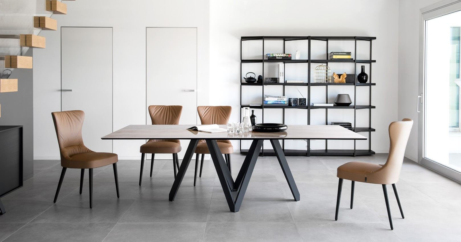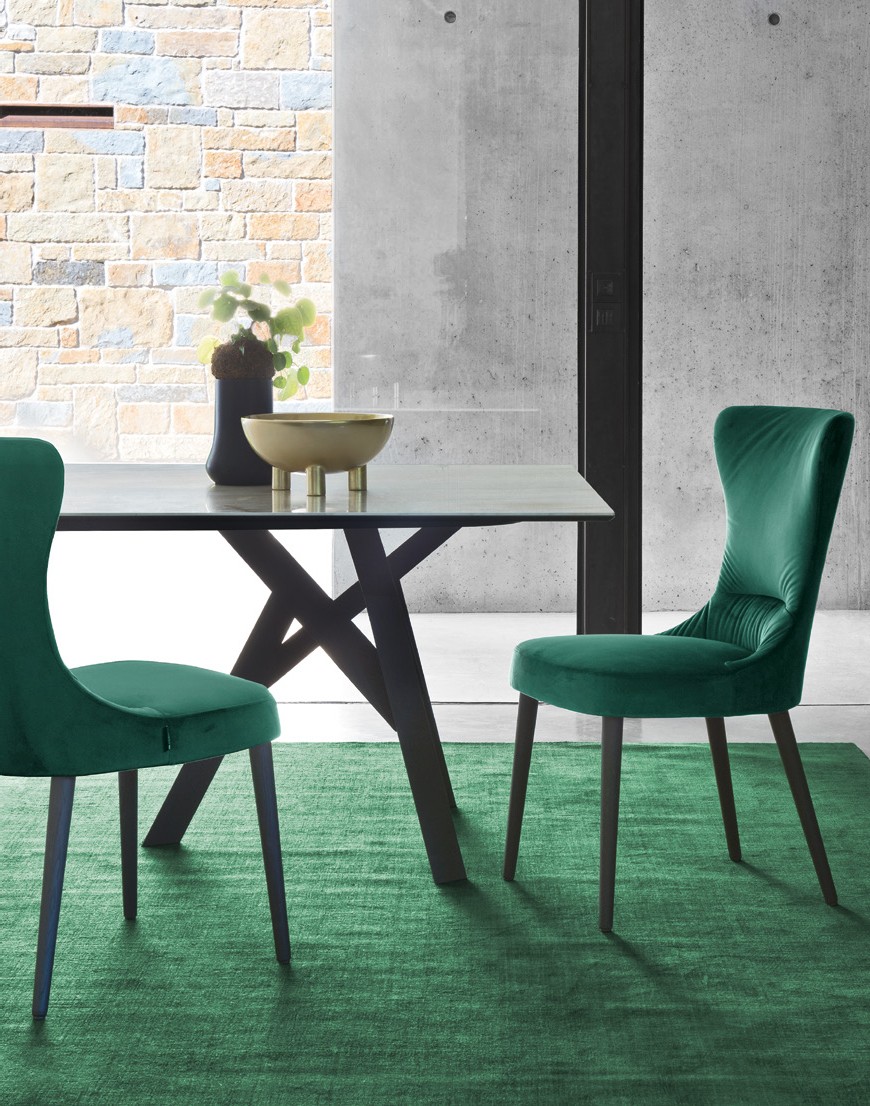 A chair, as such, must be comfortable and inviting, but to this main function must also be added another, a representative and aesthetic one. ROSEMARY, sleek and sinuous, with its padded shell and high backrest styled with two flexible upper wings handles these functions effortlessly ensuring maximum comfort.