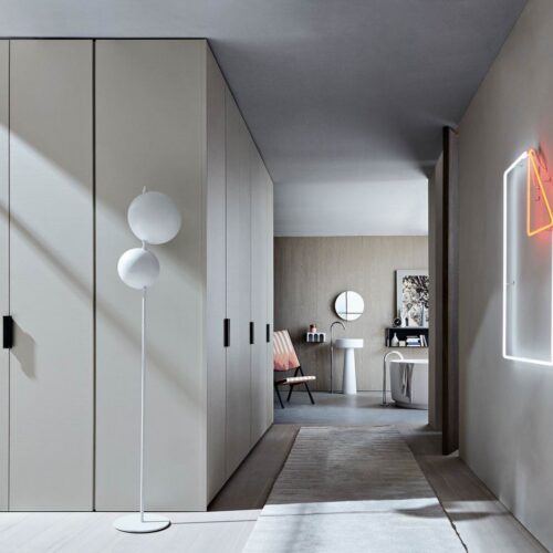 River is a luxurious wardrobe, with sliding walnut doors, combined with an aluminum profile which acts as handle at the same time.