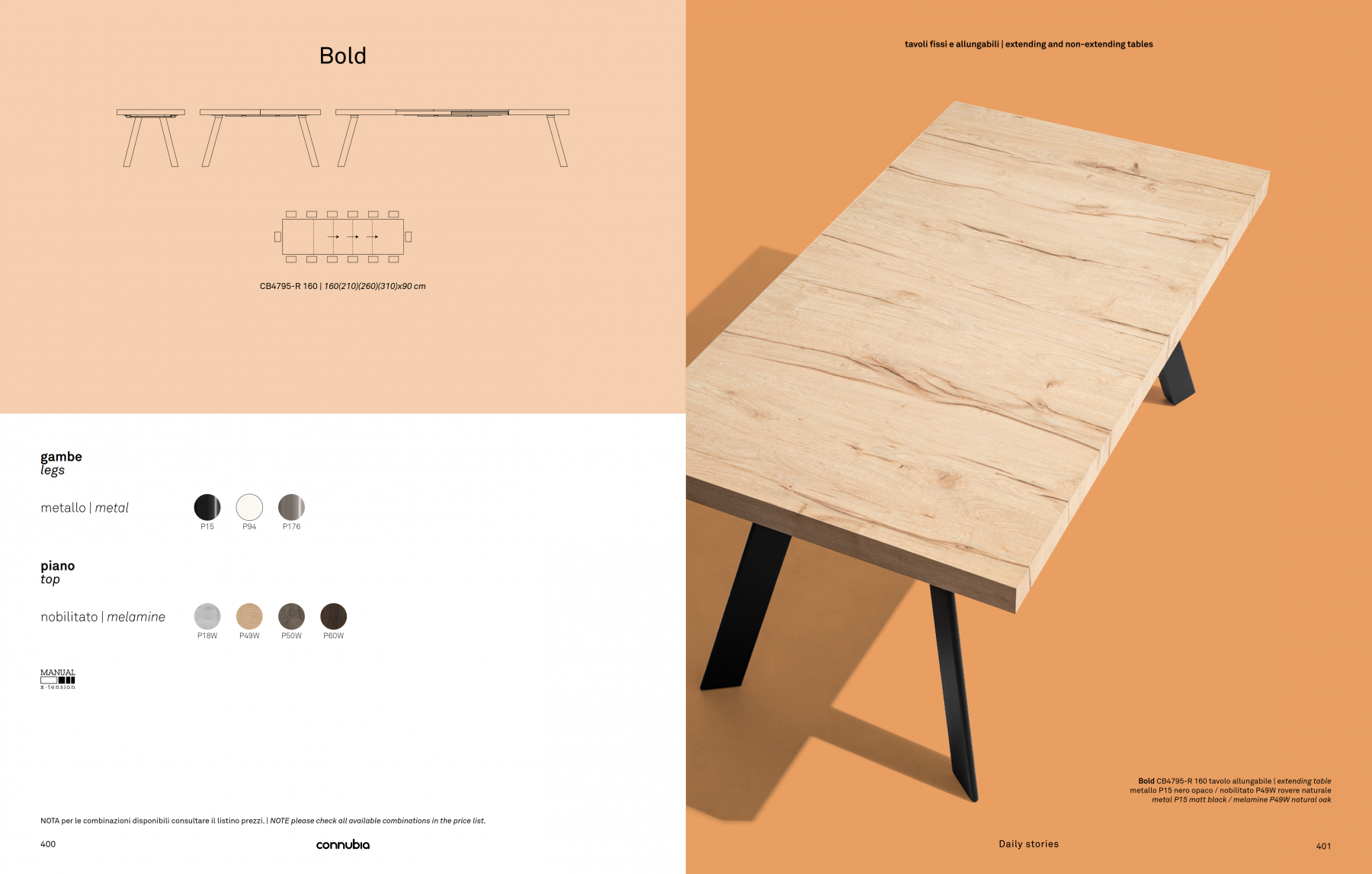 The central extension system allows the legs and underside to open wide, providing access to an internal drawer that houses three independent extensions. These can be used to extend the table to different lengths according to requirements.