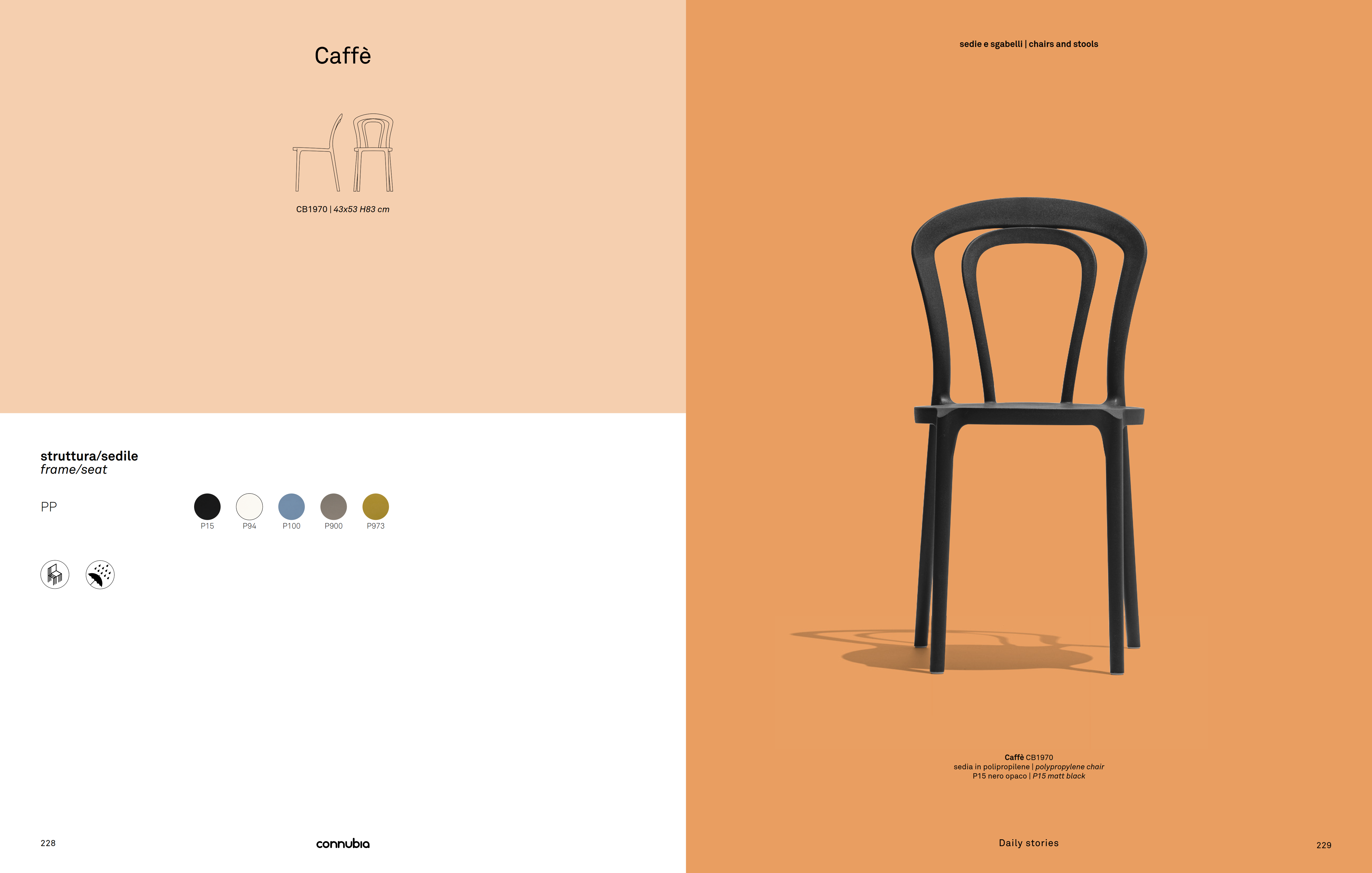 Polypropylene chair, stackable and suitable for outdoor use. Modelled on the timeless design of the Thonet chair, suitable for every room and perfect for contract use. The strength of the frame is guaranteed thanks to the air-moulding technology used for the legs.