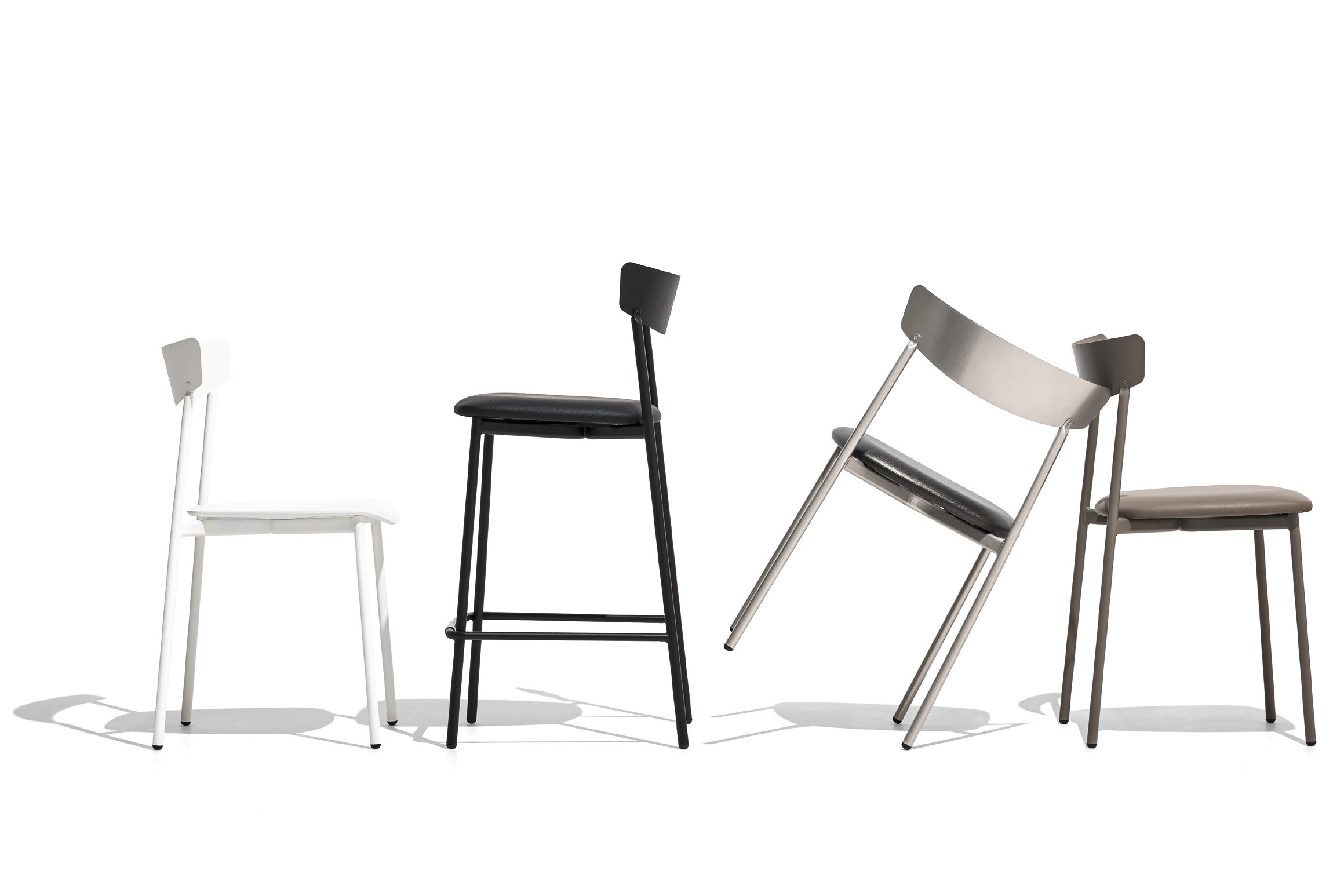 Chair featuring a tubular metal frame and a thin backrest secured to the frame thanks to a special finish that adds charm and creates a stylistic point of interest.