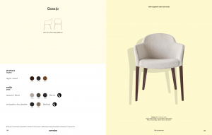 Model GOSSIP armchair with armrests, with a solid wood frame and upholstered and covered seat. Its visible legs, tapering to a square base, are in solid beech wood while the contoured seat and curved backrest are upholstered and covered in stain-resistant and antibacterial fabric. Thanks to the correct height of the armrests it serves also as a chair and can be placed at the dining table or desk. Perfect for decorating different rooms such as the living room, study or bedroom. Discover all the finishes!