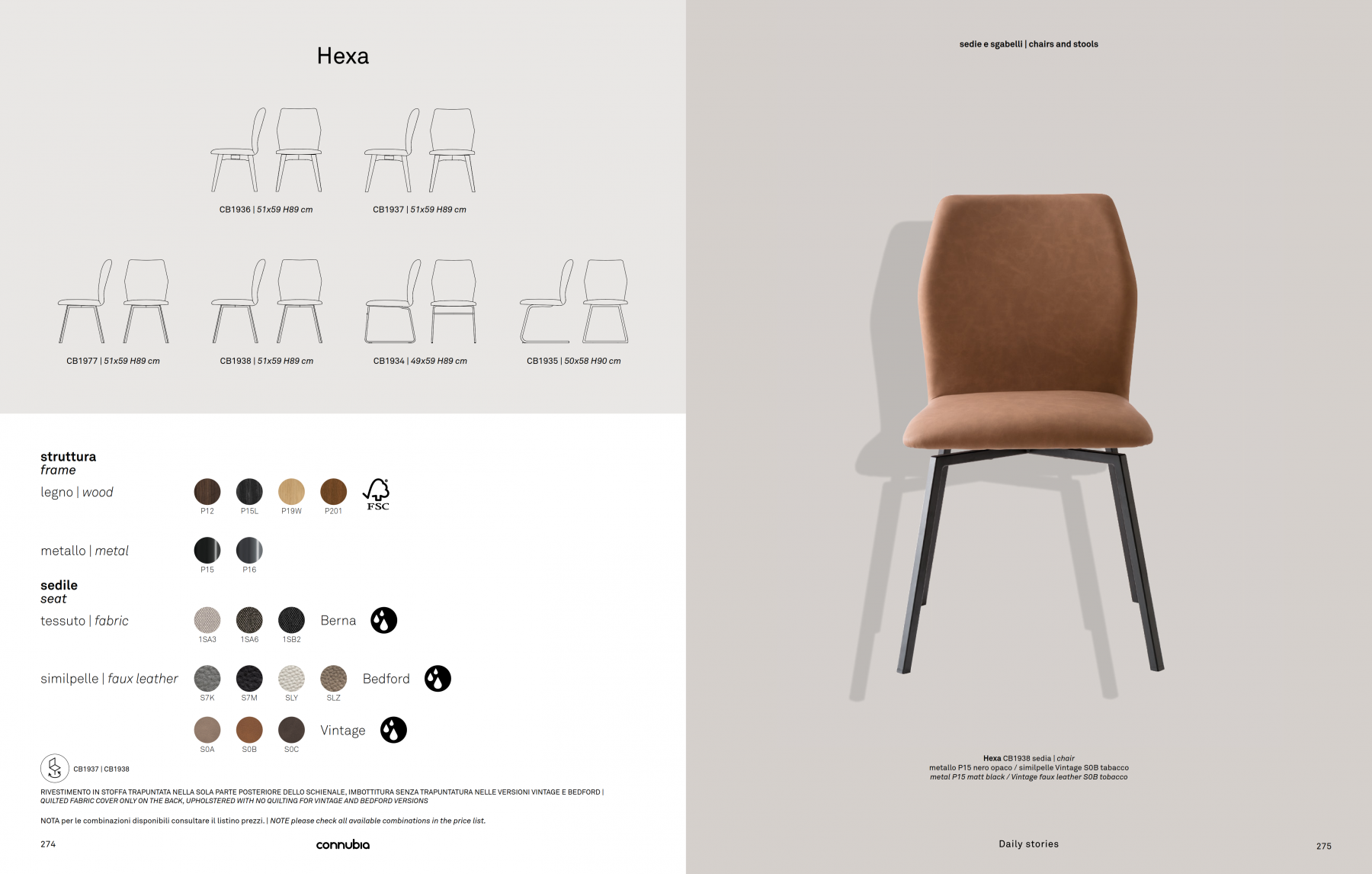 The HEXA chair is made from a 14mm diameter tubular metal frame and a single-piece fabric upholstered seat shell. The slightly hexagonal shape makes Hexa a modern and versatile chair.