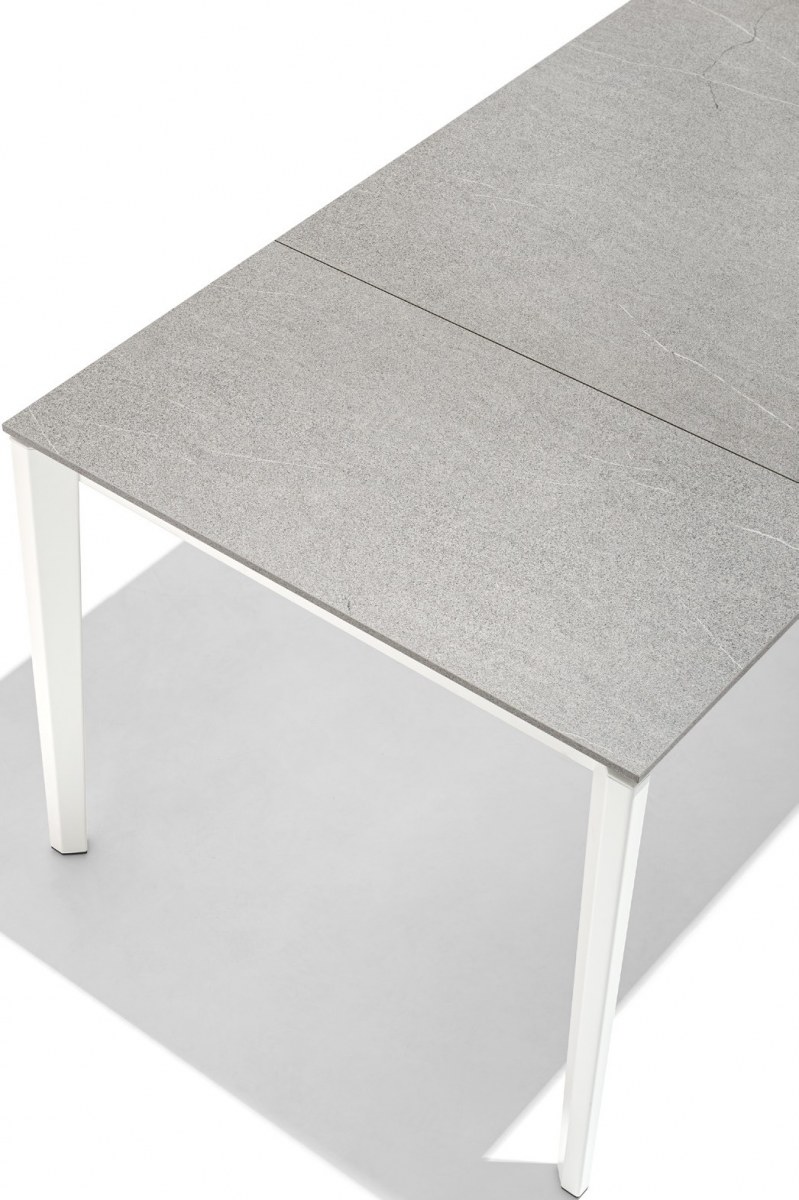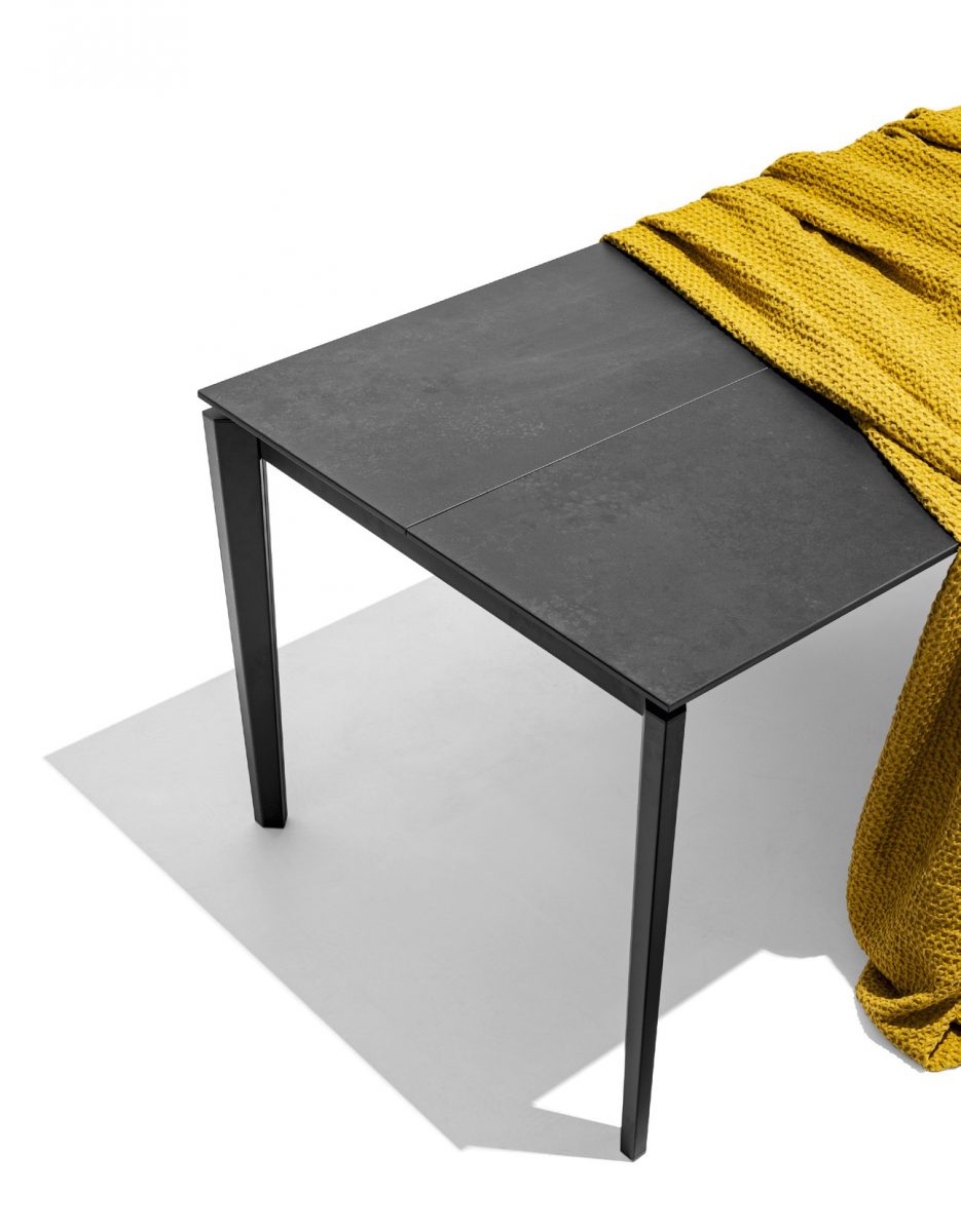 This base can be matched with melamine, glass and ceramic tops and it can have one or more extensions to suit a multitude of furnishing and space requirements.