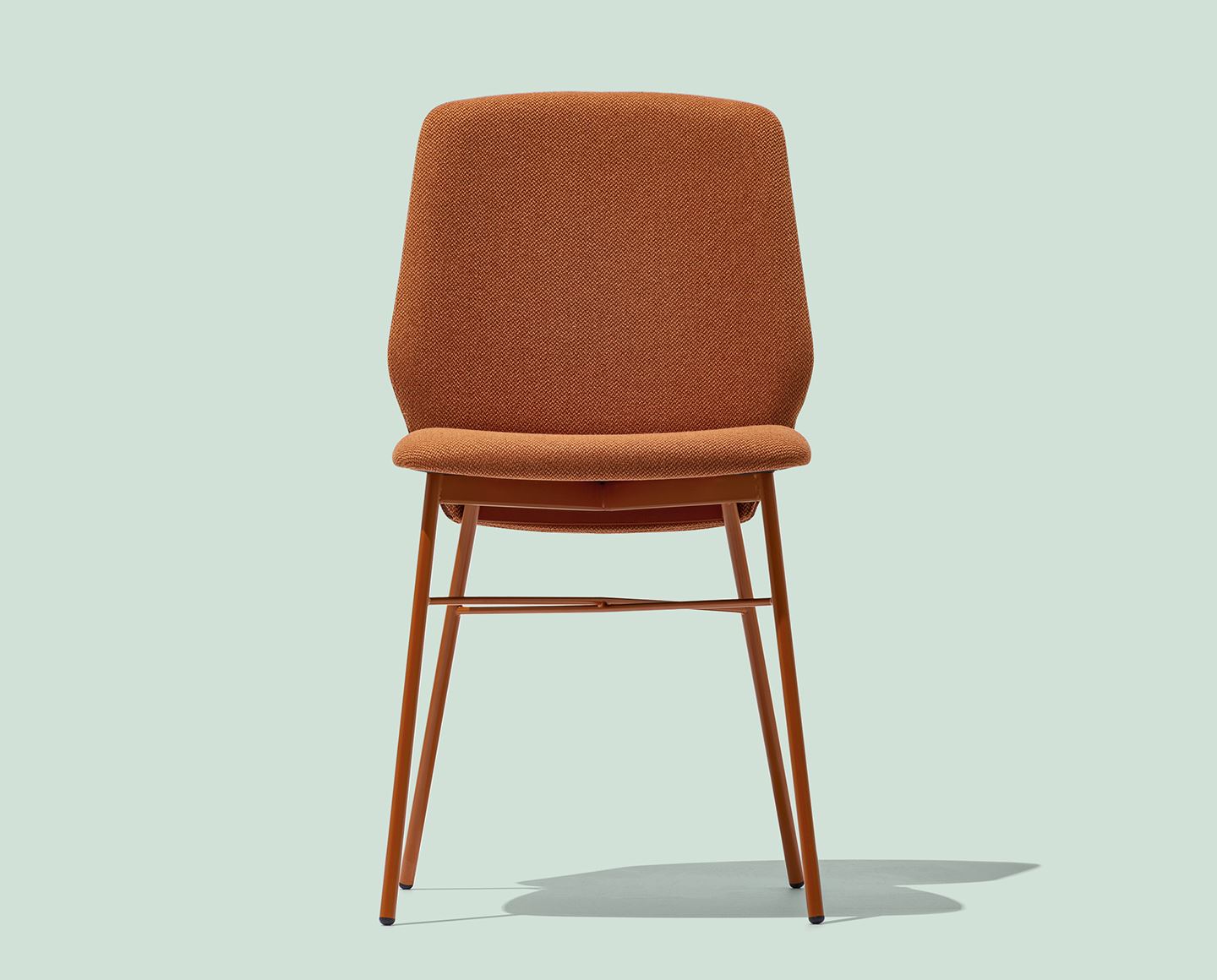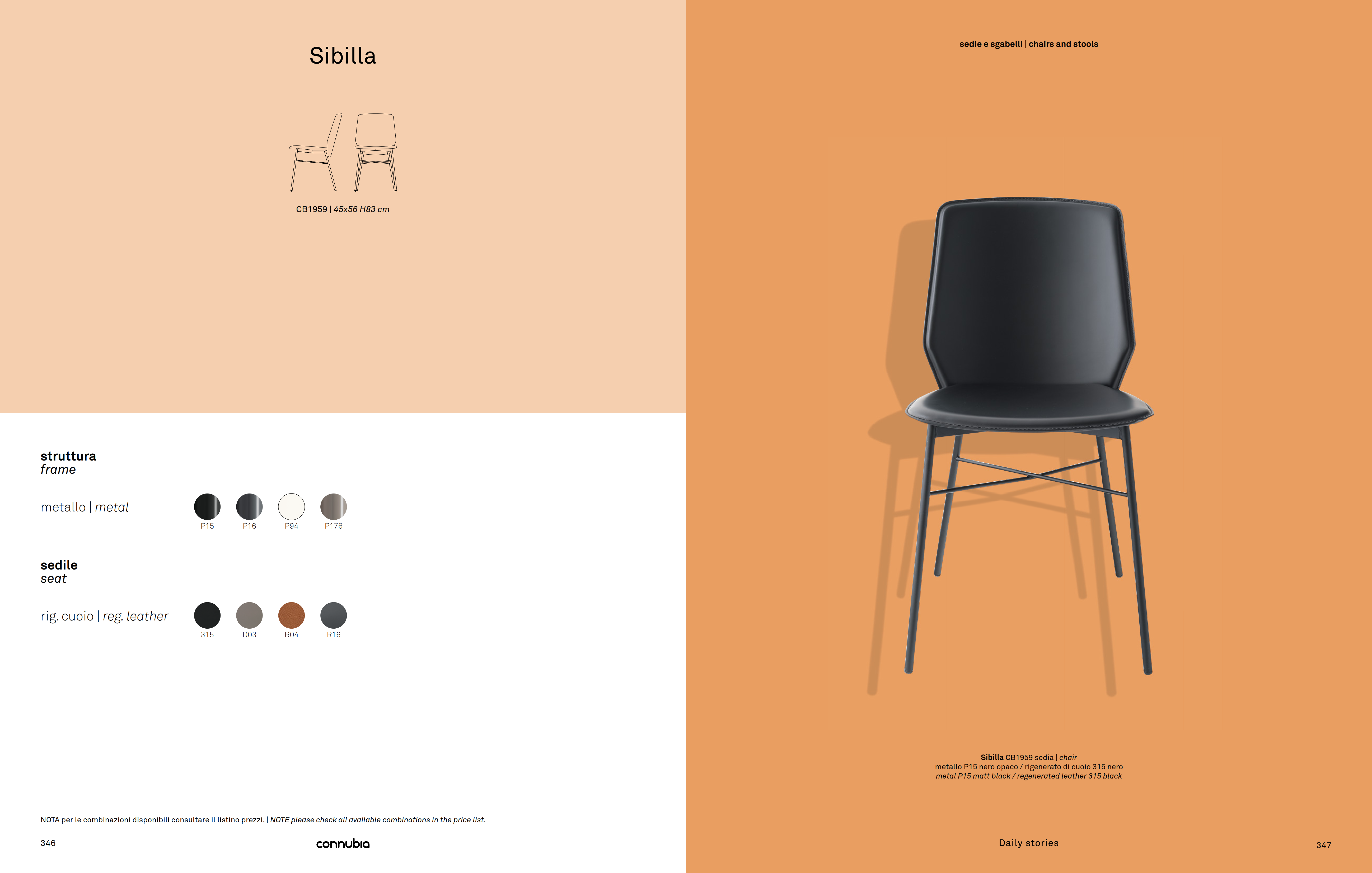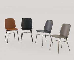 SIBILLA chair with metal frame and plywood seat covered with regenerated leather with visible matching stitching. Modern and functional, perfect for the dining area.