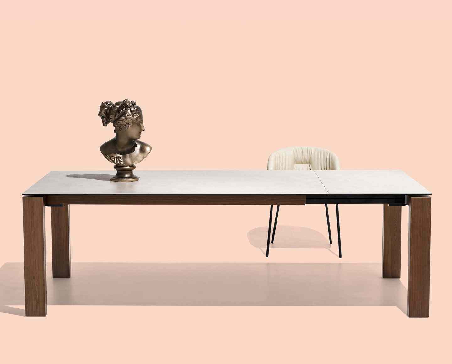 The SIGMA table contains an ingenious mechanism able to expand the top surface. SIGMA is a drop-leaf table, perfect for furnishing the dining room. Configure it in the version you prefer.