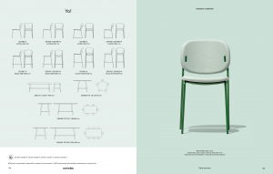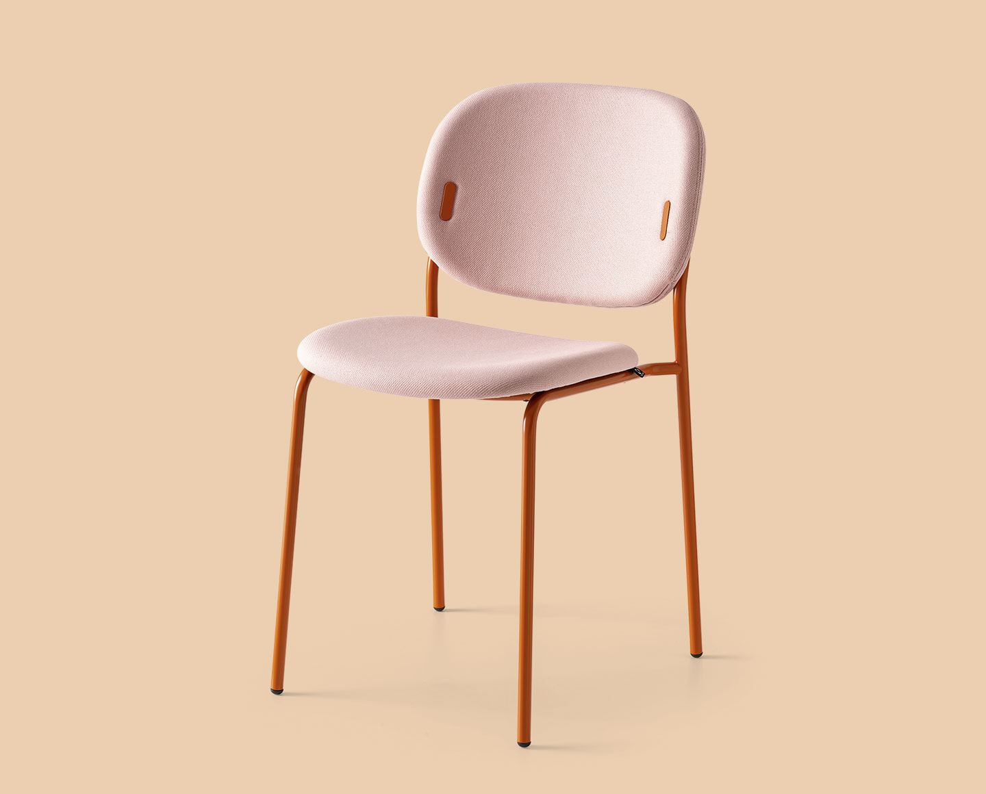YO! chair with seat and backrest either in wood, padded material or polypropylene. It boasts a standout backrest fastening featuring a colourful decorative plate attached to the surface and made to match the base.