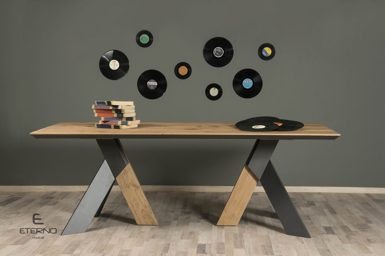 Designed with geometrical logic, focuses the interest on the legs of the table which are triangular and create a pleasant visual game