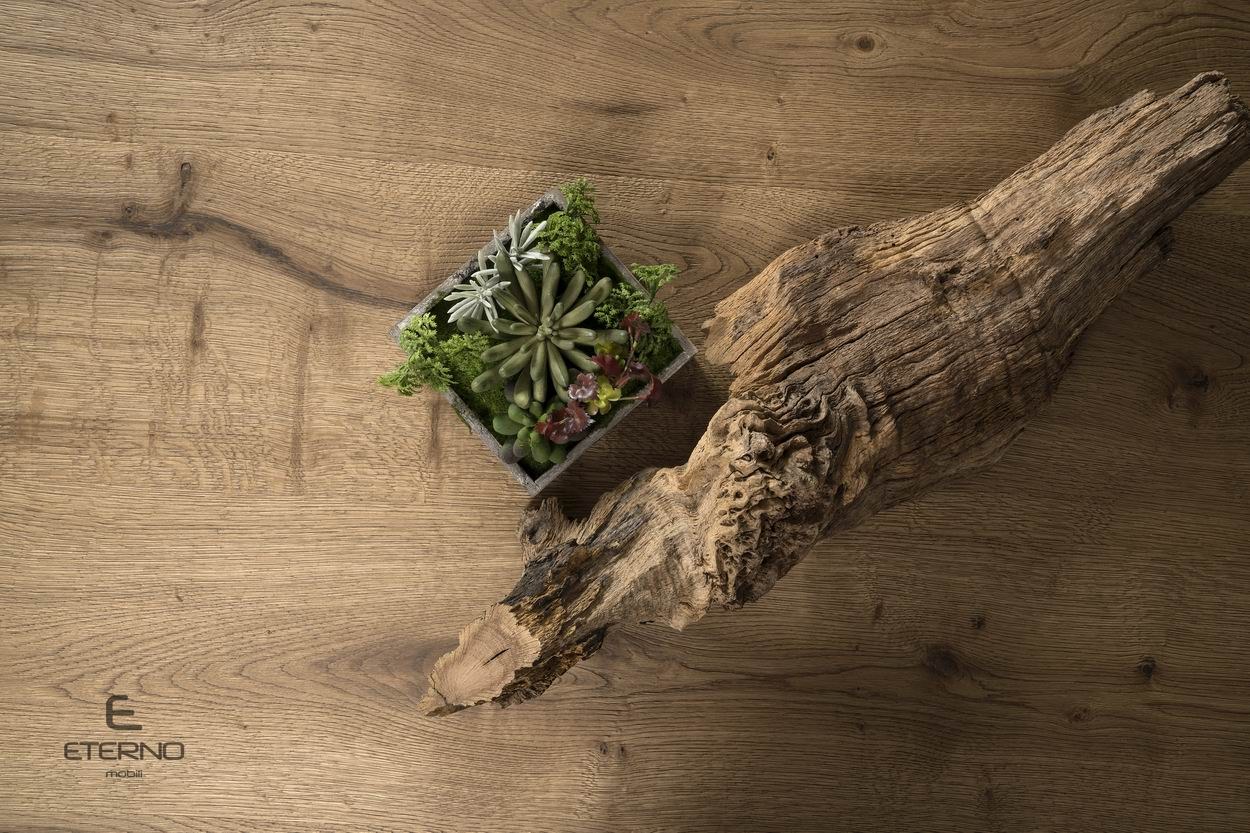 Oak rustic wood combined with metal elements.