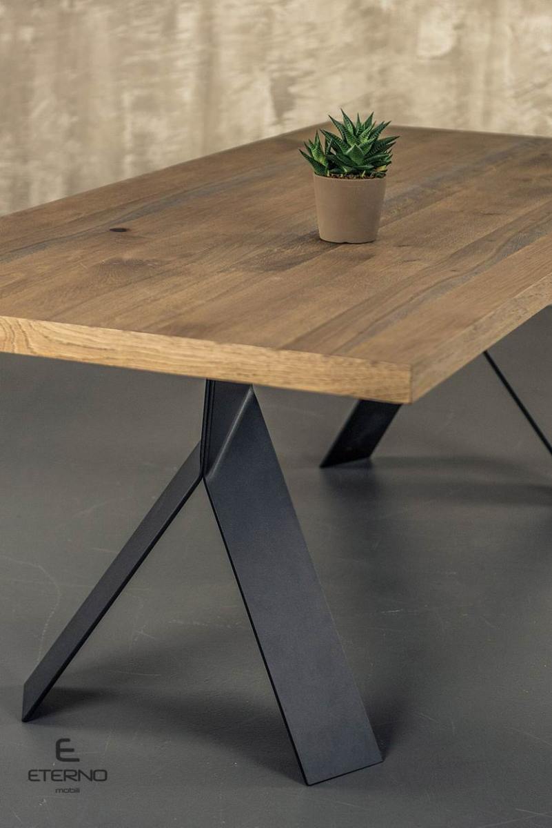 This dining table is made of oak wood, rustic and metal legs impressing us both esthetically and functionally.