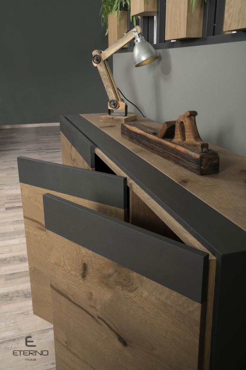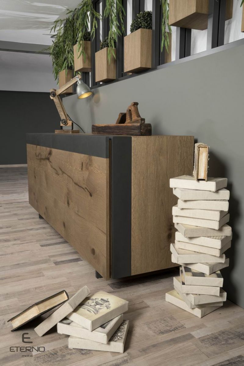 A model with a modern style made of rustic wood and embossed lacquer.