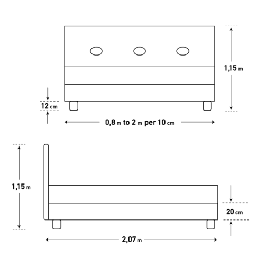 - Extrabed base option (Available only in 80 – 90 – 100 cm x 200 cm)