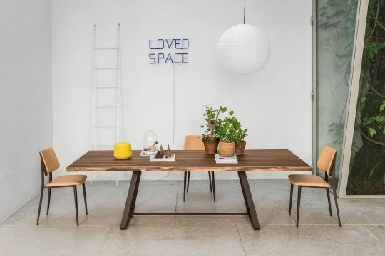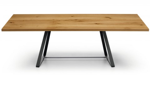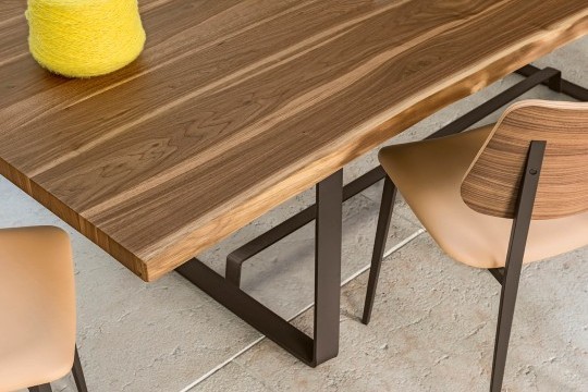 Fixed table with sled base in lacquered steel available in different sizes. Top in crystalceramic or solid wood.