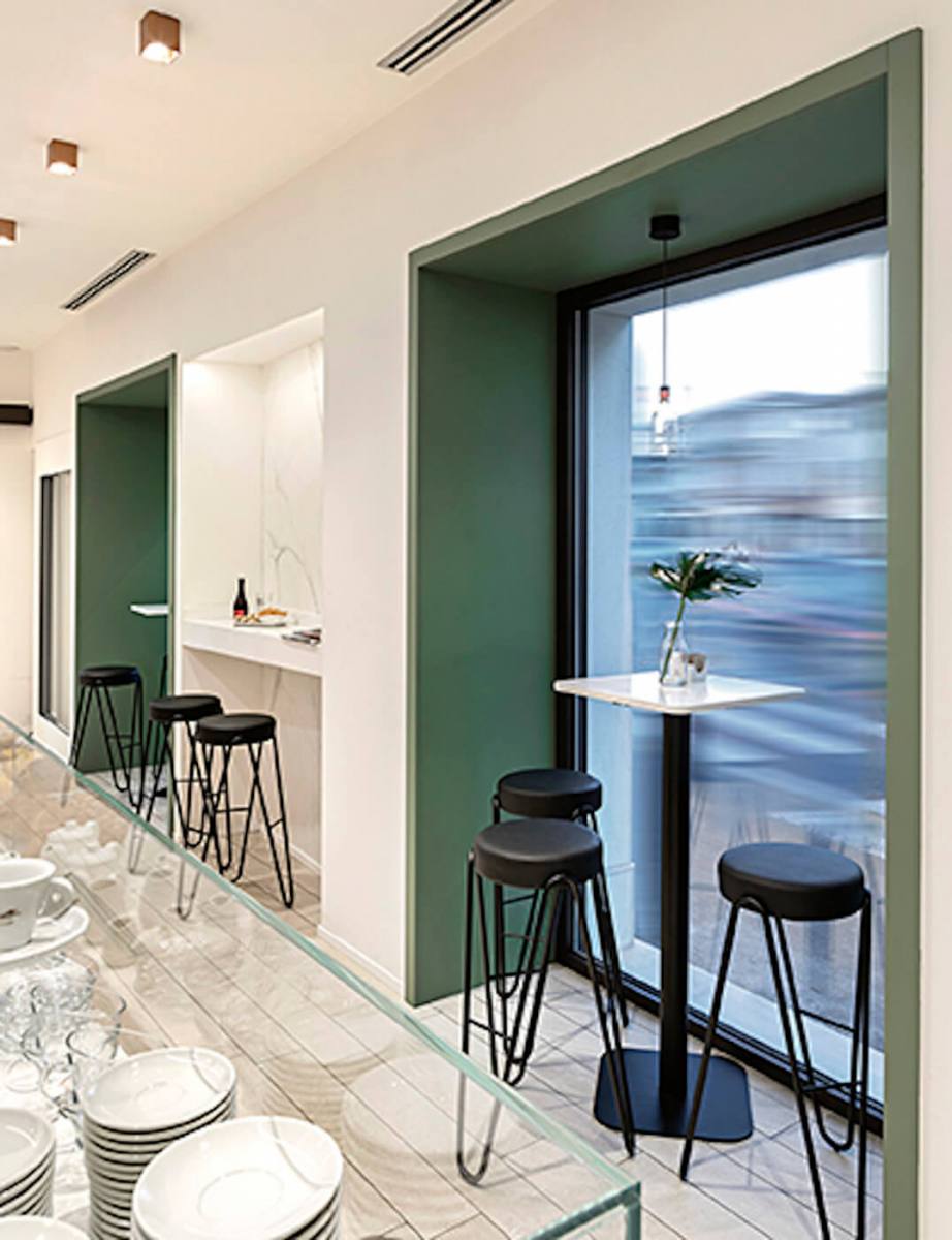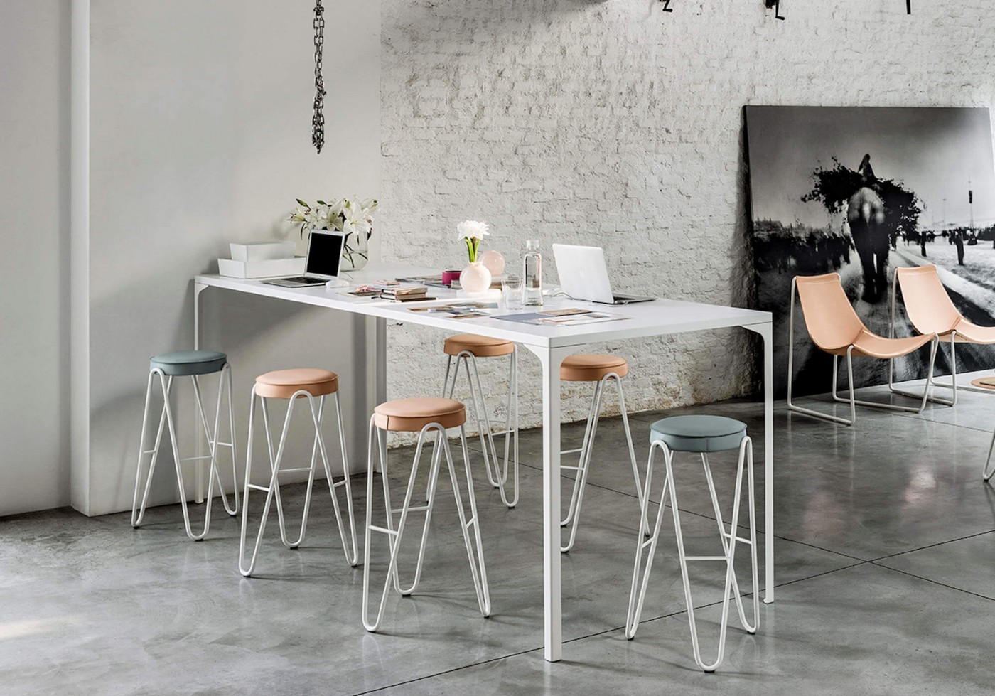 Stool available in three different heights: h75 cm (29.9 in), h65 cm (26 in), h45 cm (18.5 in).