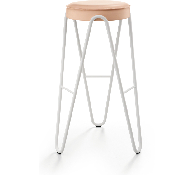 Apelle jump stool available with structure in lacquered steel. Seat in hide, leather, ecoleather, fabric or coustumer fabric.