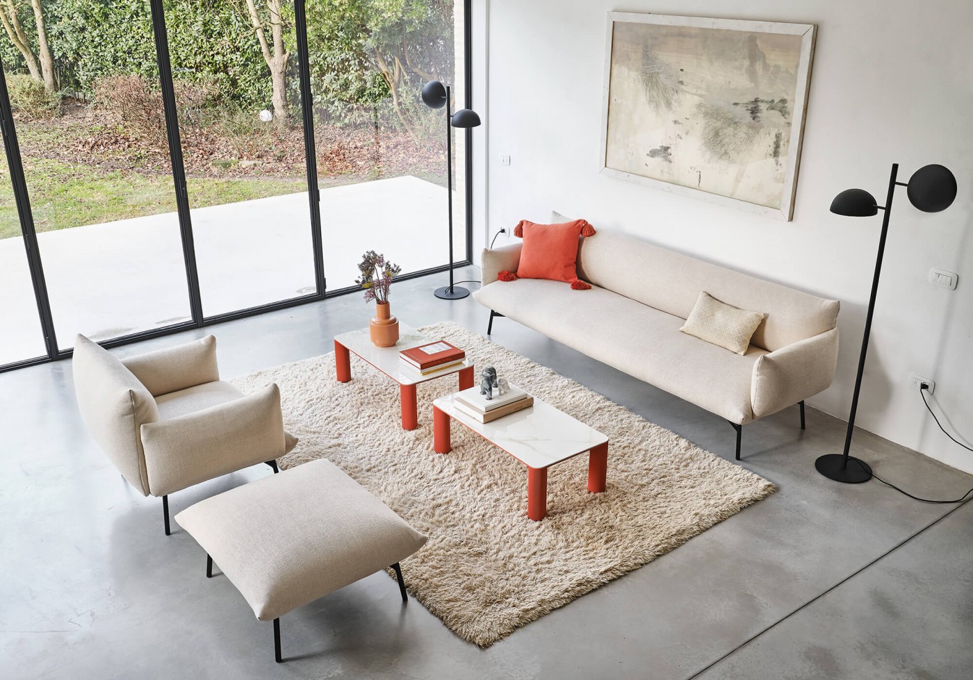 Area is a collection available in different sizes, in the sofa, armchair and pouf version, to meet any need on interior decoration.