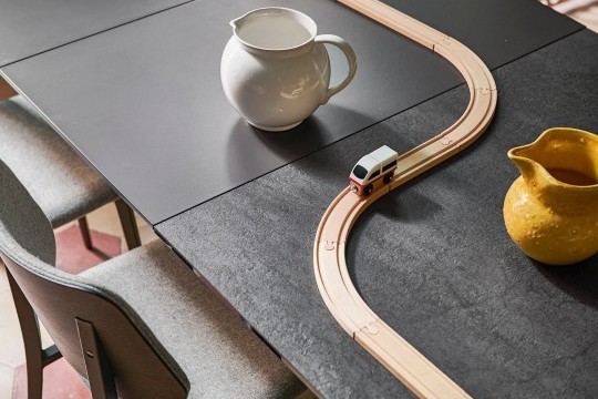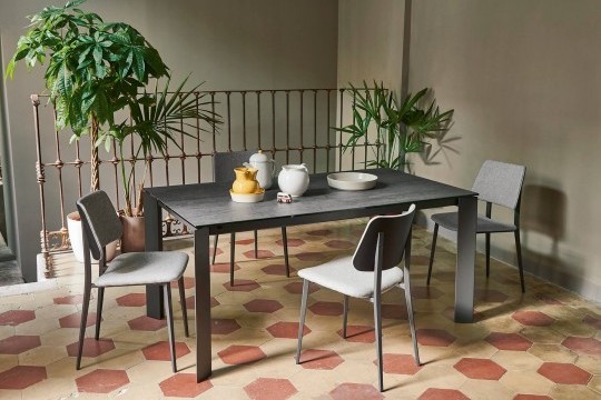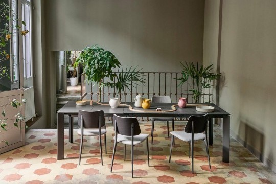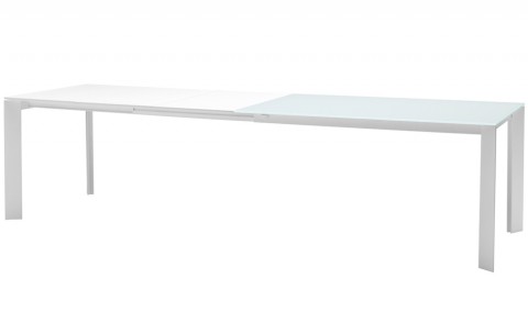 Ghedi extendable table available in various sizes. Frame available in lacquered steel. Top available in melamine, laquered MDF, glossy glass, anti-scratch glass or crystalceramic.