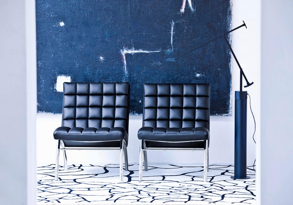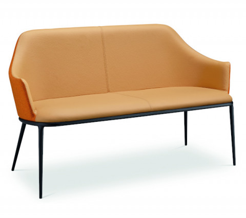 Marsiglia lounge armchair with four leg frame in steel. Shell upholstered in leather, ecoleather, fabric or custom’s fabric.
