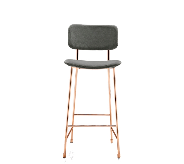 Counter stool with 4 legs frame in steel. Seat and backrest in wood or Fenix.