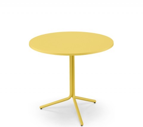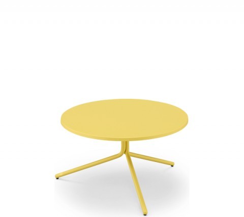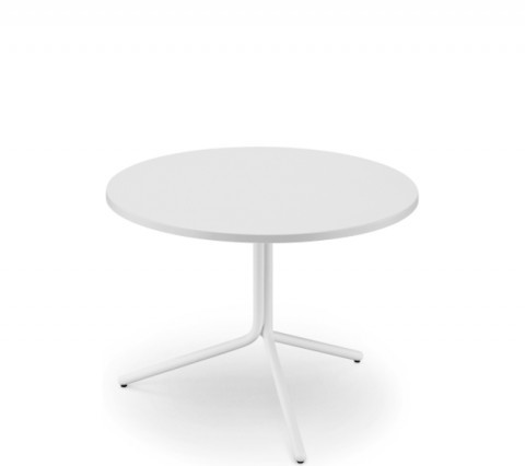Coffee table with three-spoke base in painted steel. Top in melamine or HPL.