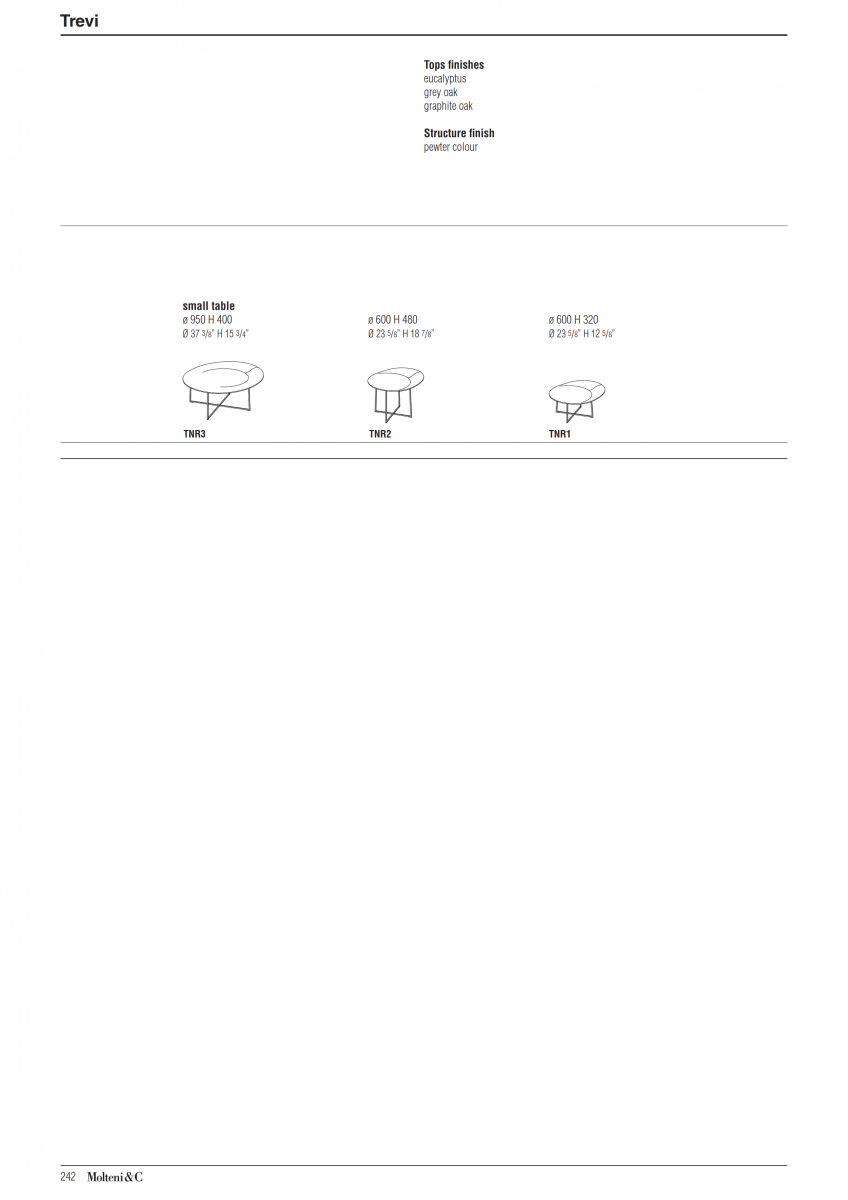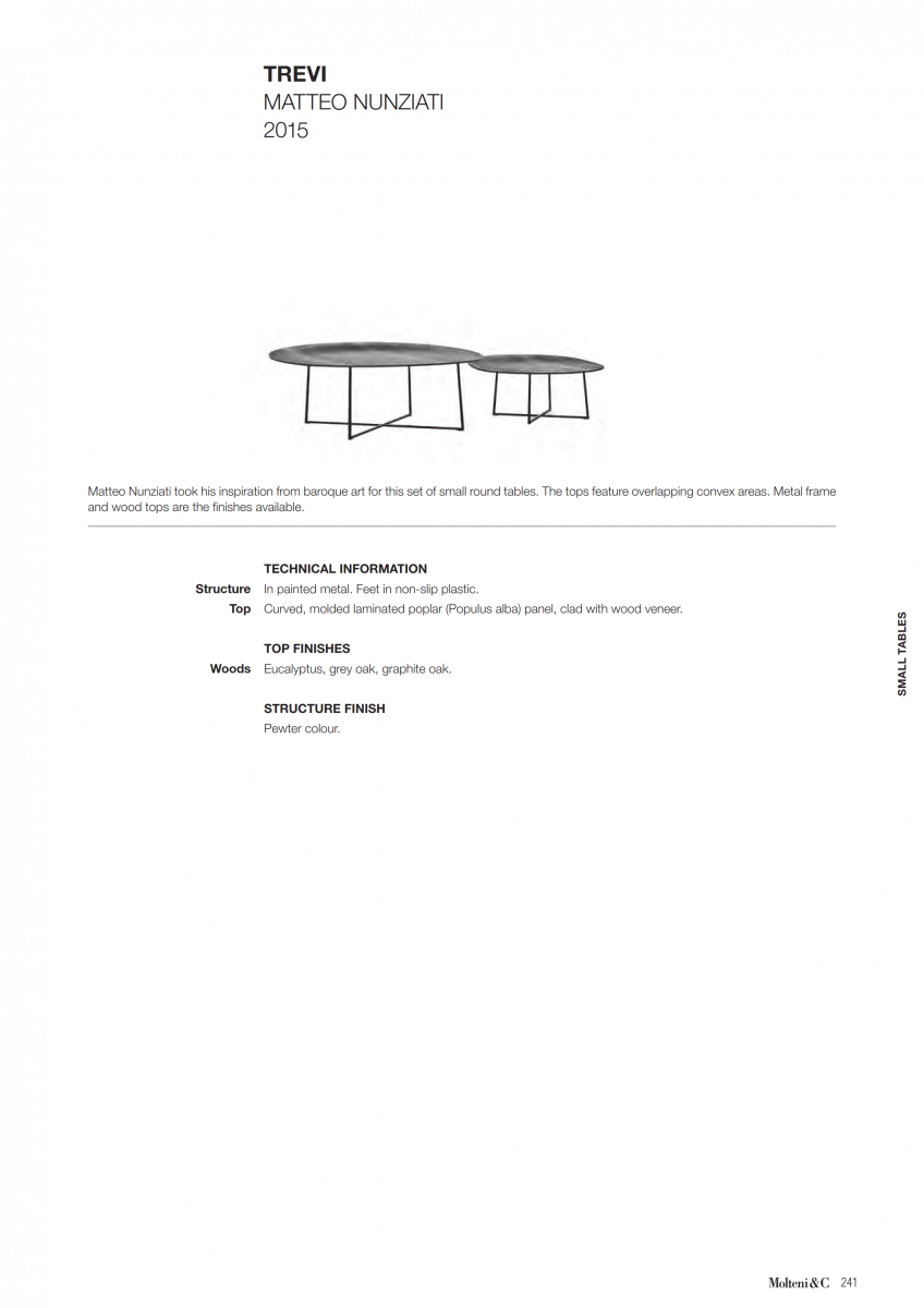 Matteo Nunziati took his inspiration from baroque art for this set of small round tables. The overlapping convex top resemble drapery stirred by the wind. It is as if they are hanging in the air. A typical effect of painters and architects from seventeenth-century. Rome and its iconic Trevi fountain gave the tables their name.