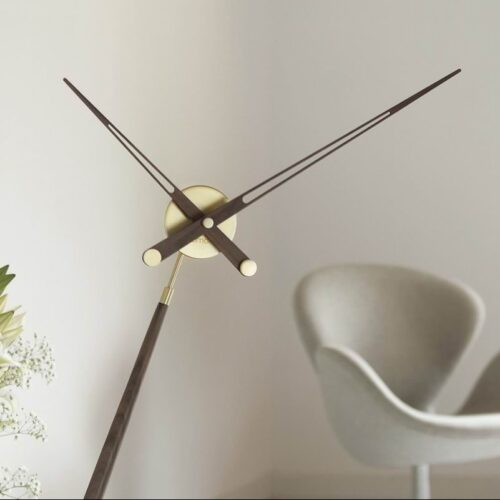 Emperador marble, walnut wood and polished brass and ring in brass or black finish