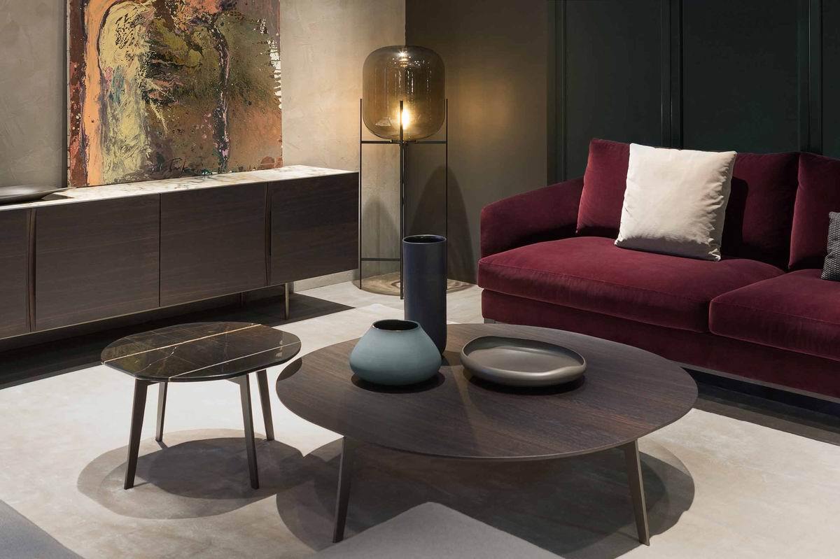 Interaction of the materials: the occasional tables perfectly show off the elegance of the Madisson range. marble, heat treated oak or lacquered on the table tops, metal legs in brown-bronze finish. A must for the new salon culture as well as comfort at home.