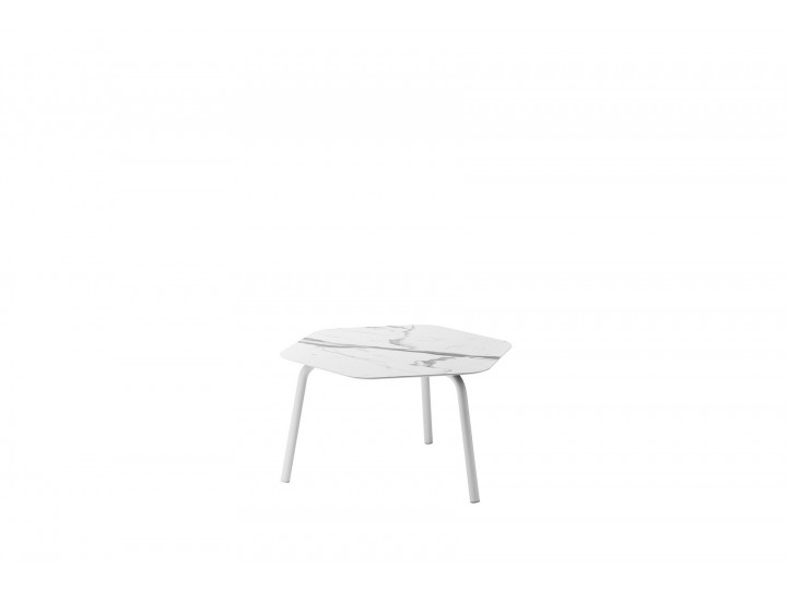 Low table, aluminum base powder coated, hexagonal HPL top. The hexagonal top makes the design of this table precious and exotic, ideal for coordinating with a living room or a day bed in the pool. The HPL top finishes are suitable for any design requirement both in residential and contract settings and for indoor and outdoor projects.
