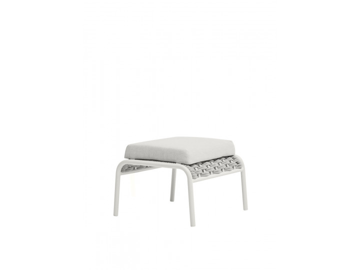 Pouf, aluminum frame powder coated woven with Round Searope. Practical with a fine classic touch, perfect to combine with the coordinated armchair. Suitable for indoor and outdoor, both in residential and contract settings.