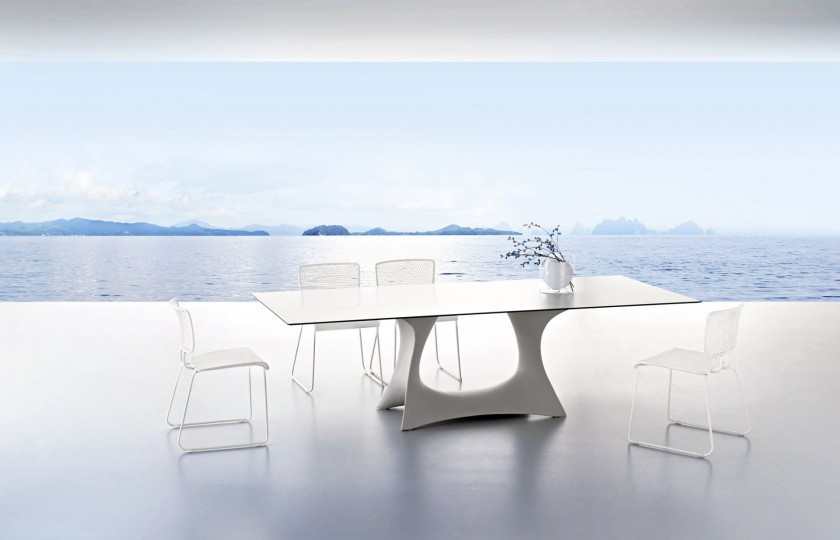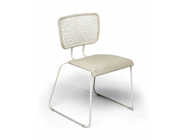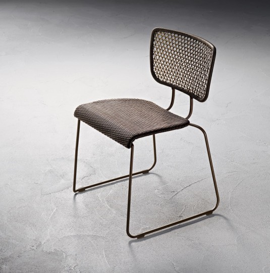 Perfectly suitable both to outdoor and indoor fittings, for dining areas and verandas. The linear and sober design emphasizes the real distinctive trait of this chair: the woven of seat and back.