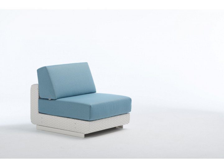 Outdoor 1-Seat element in aluminum and Sunweave. Precious materials and meandering silhouettes make this collection unique and luxury. The cozy seat ensures the most complete comfort, the dynamic shapes allow to play with the surrounding spaces and complements. All the Hamptons range is modular. Perfect for both indoor and outdoor furnishing, both for home and contract projects.