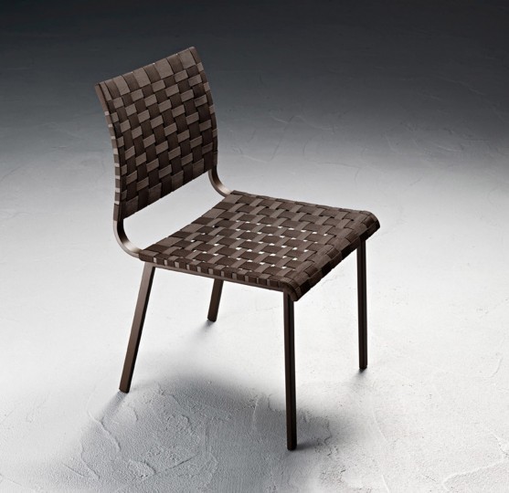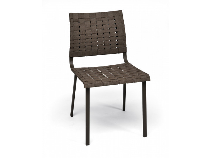 Outdoor chair, stainless steel frame powder treated woven with pvc STRAPS. The pvc STRAPS contrasts well with the simplicity of the aluminum frame. Perfect both for furnishing living and dining areas as well as outdoor areas such as terraces and verandas. It is the ideal chair for residential and contract projects.