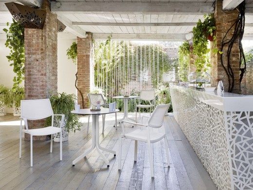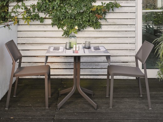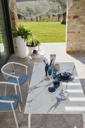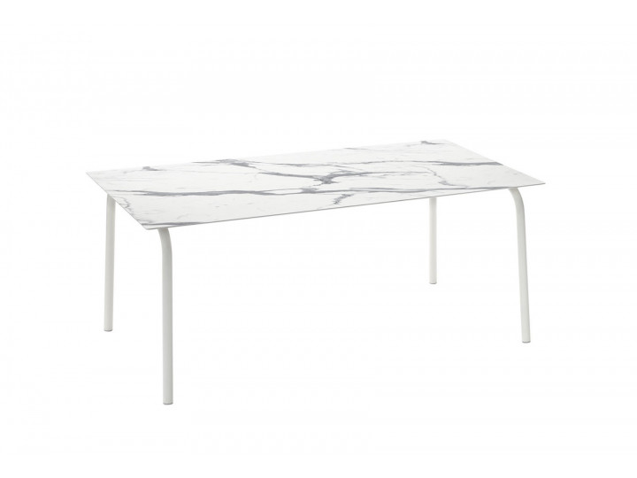 Rectangular dining table, 304 steel base powder coated and HPL top. The new finishes in white and graphite enhance the essential design of this table, which is these color variations inspire a strong recall to the outdoor. The quality of the materials makes it ideal for both outdoor and indoor suitable for residential and contract furnishing.